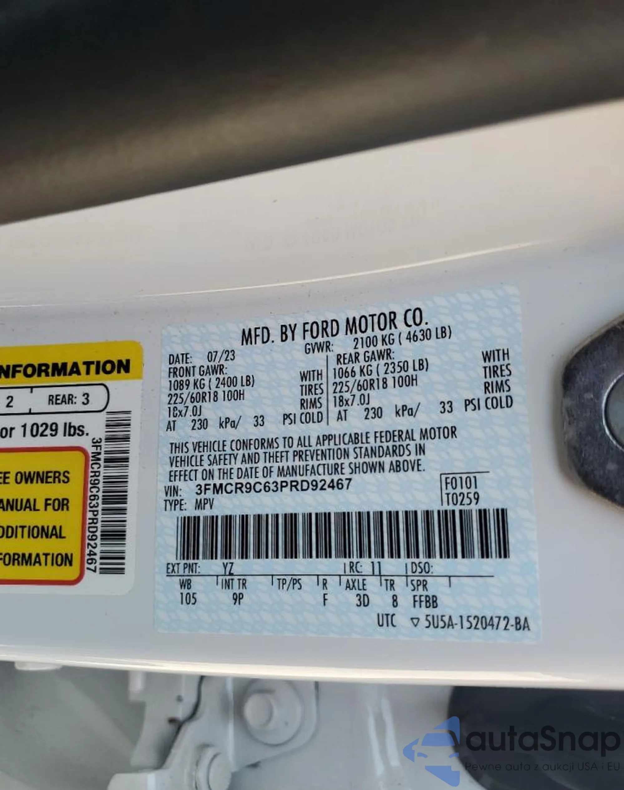 • VIN 1FTEW1CP9PKD21116