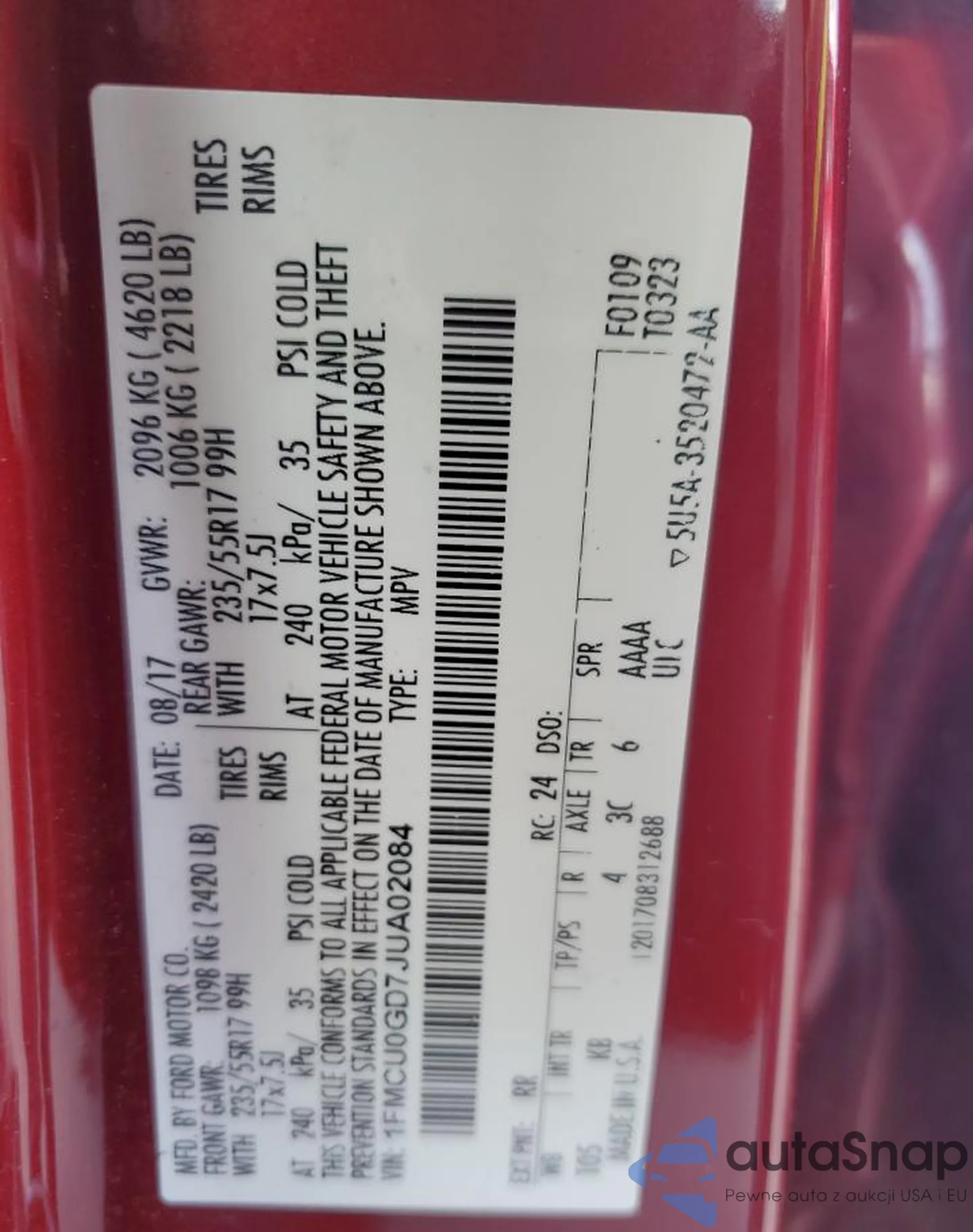 LOT: 85182475 VIN: 1FMCU0GD7JUA02084