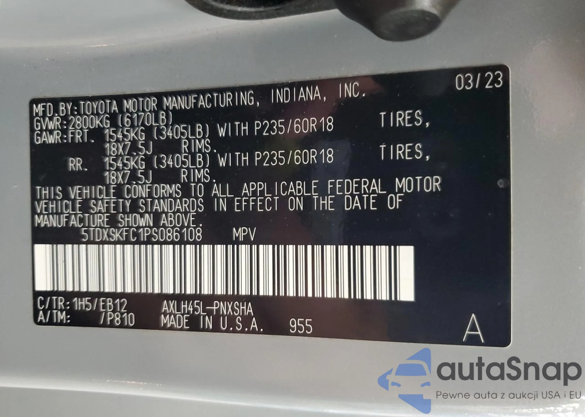 LOT: 67145425 VIN: JN8BT3BB8PW468652