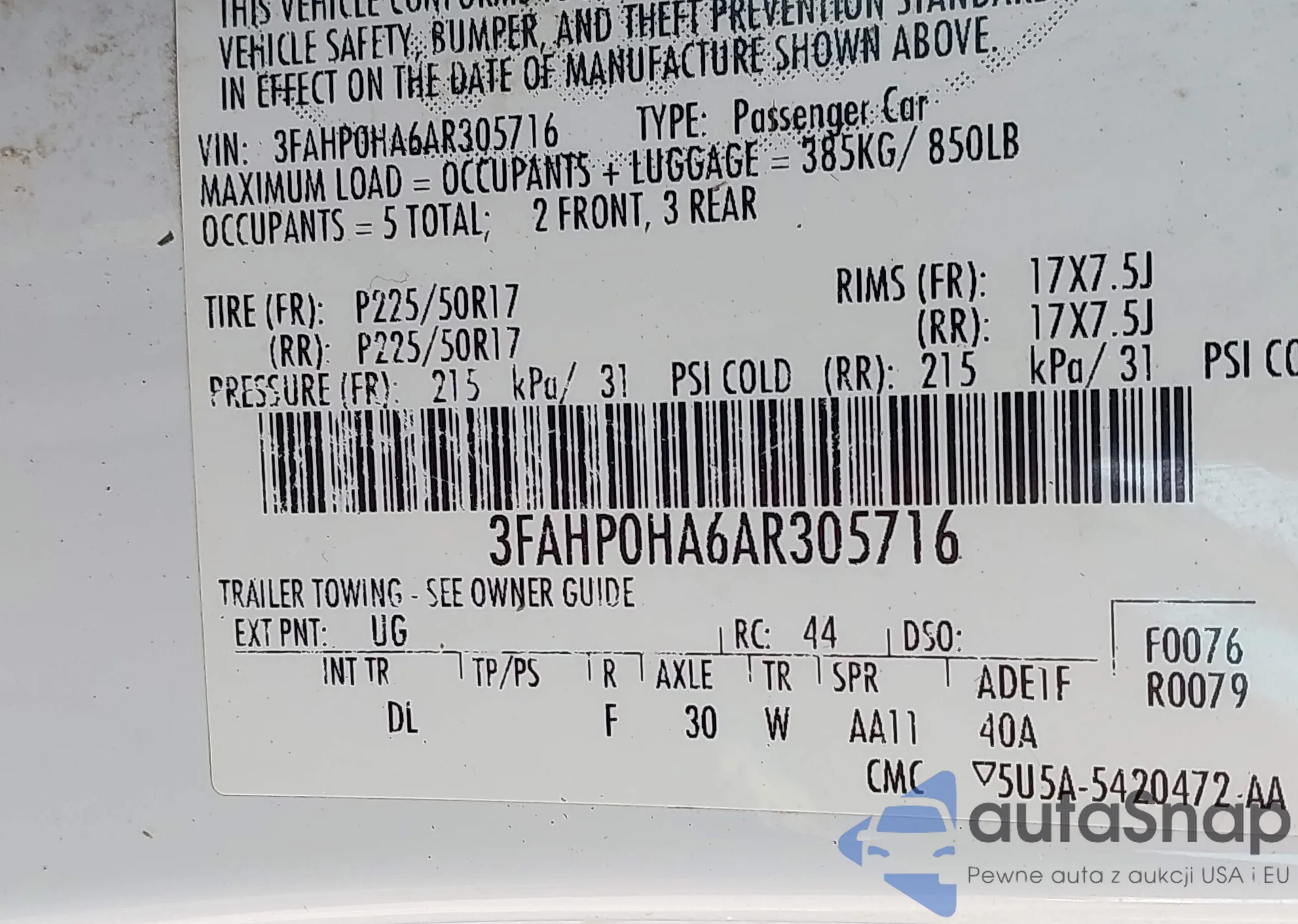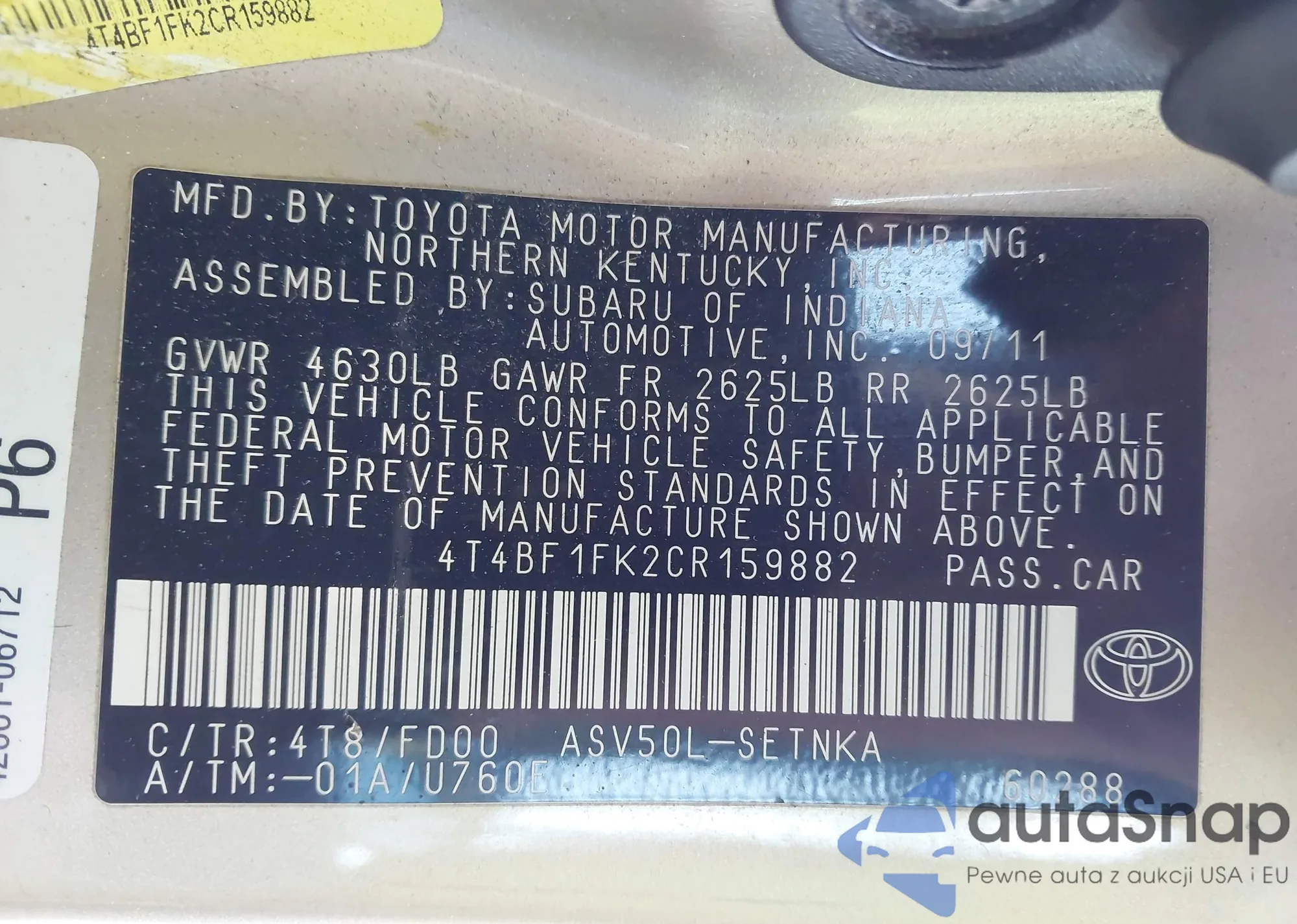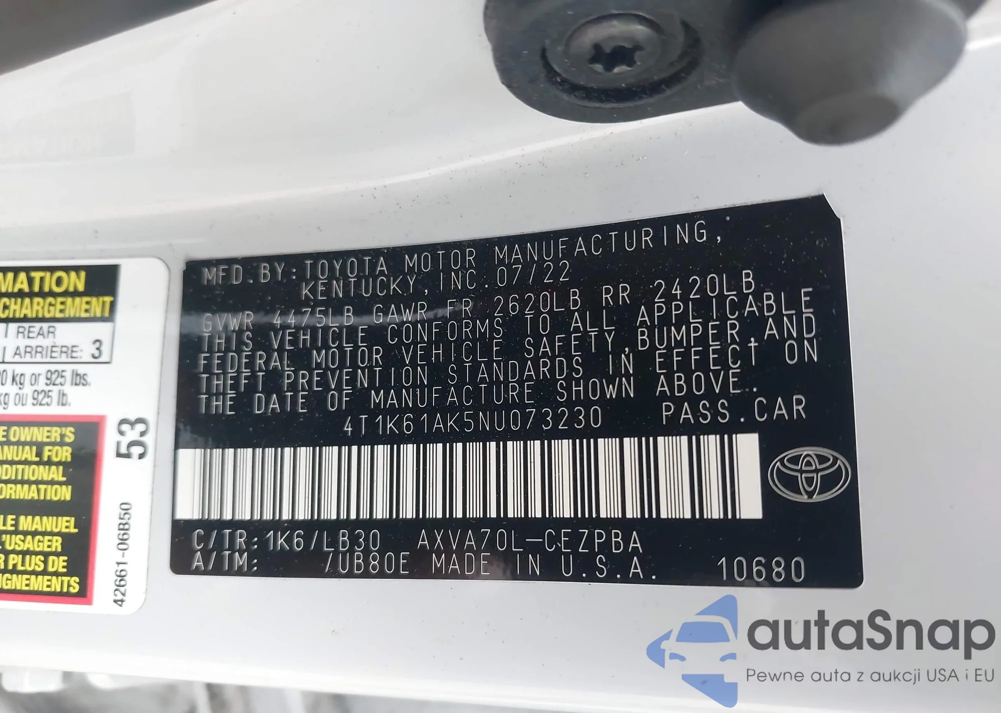 • VIN 4T1K61AK5NU073230