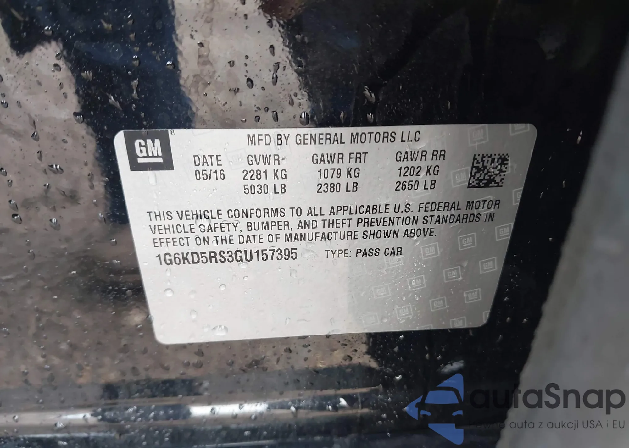 LOT: 43206805 VIN: 2G1WW15E929384896