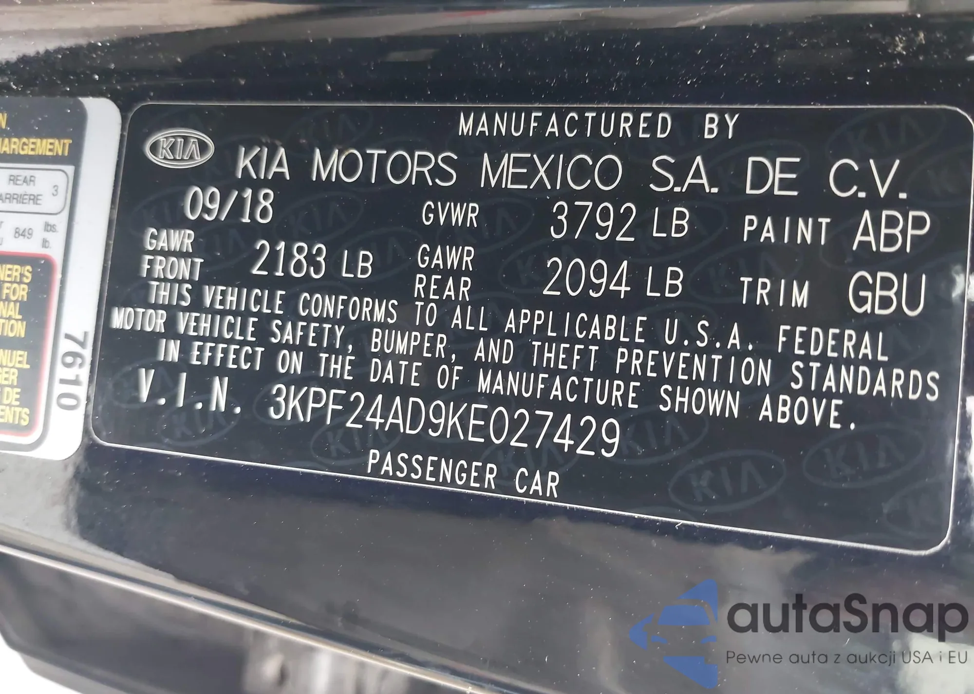 • VIN 3KPF24AD9KE027429