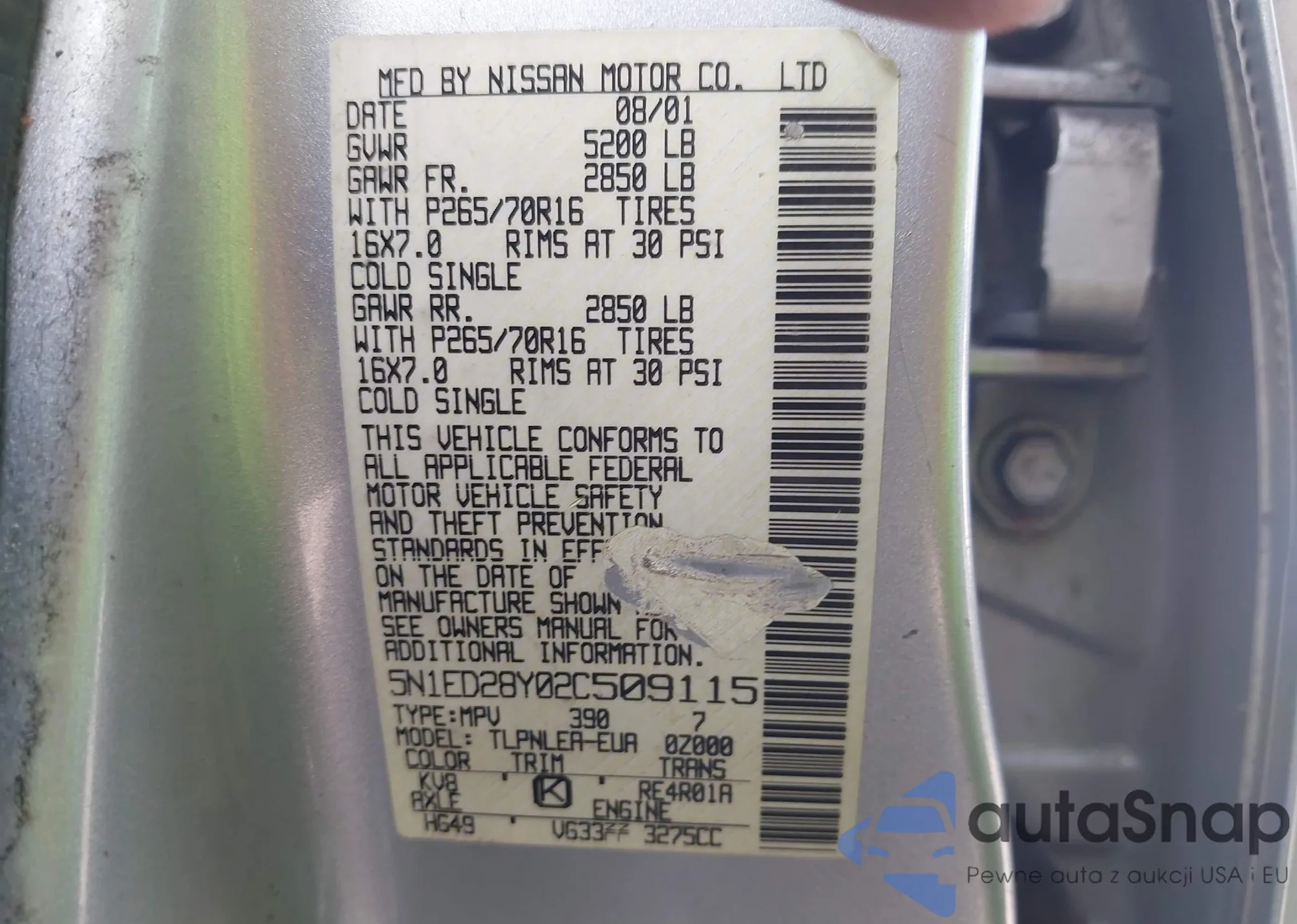• VIN 5N1ED28Y02C509115