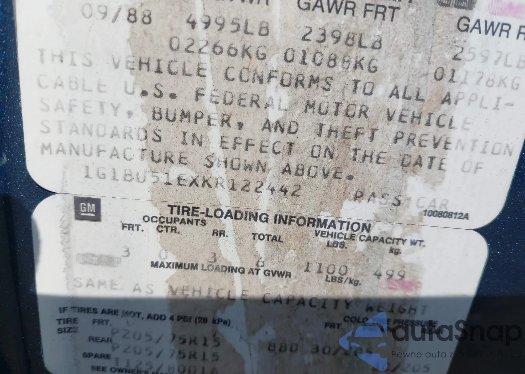 • VIN 4T1BF1FK0FU488305