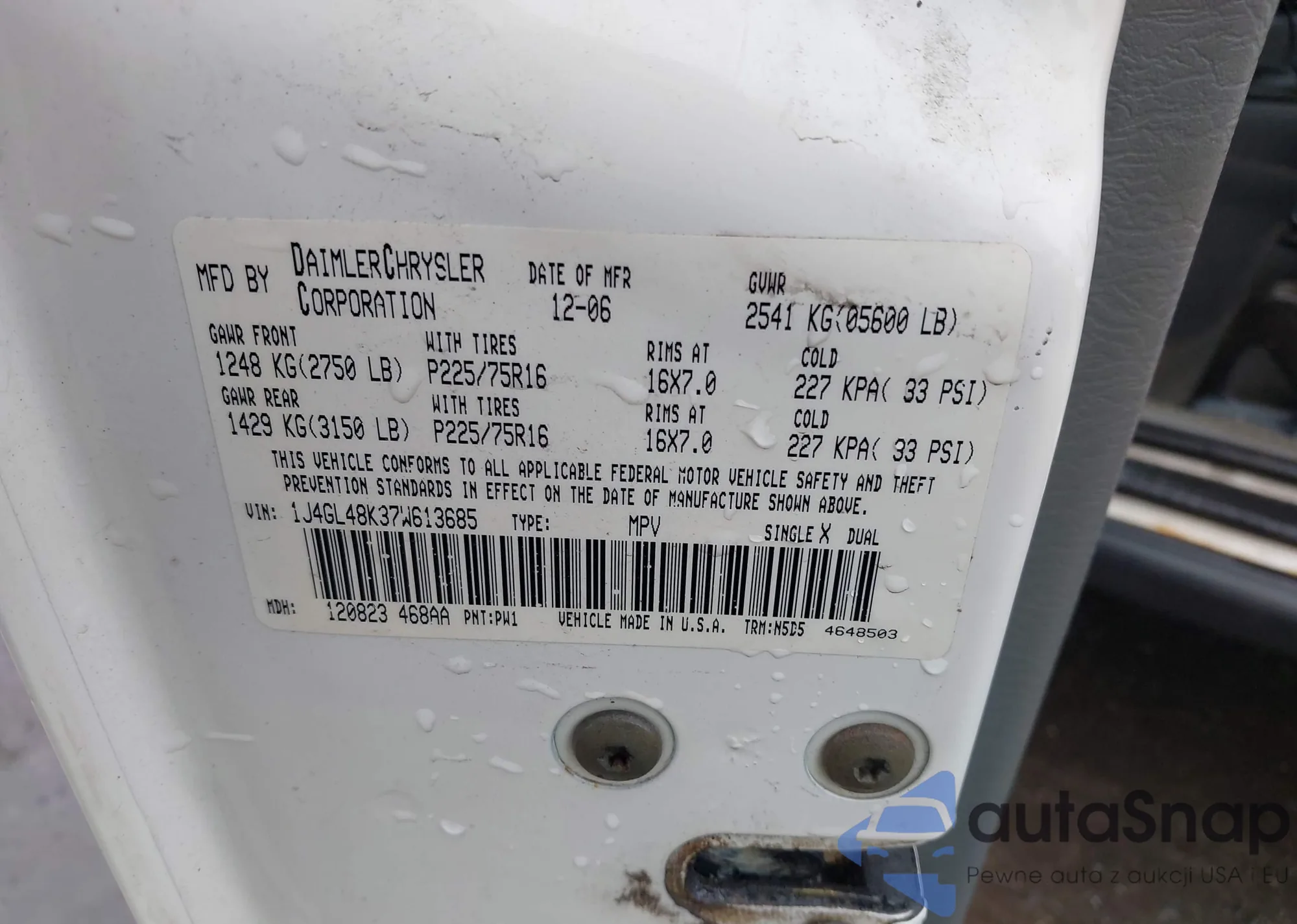 LOT: 43243433 VIN: 1J4GL48K37W613685