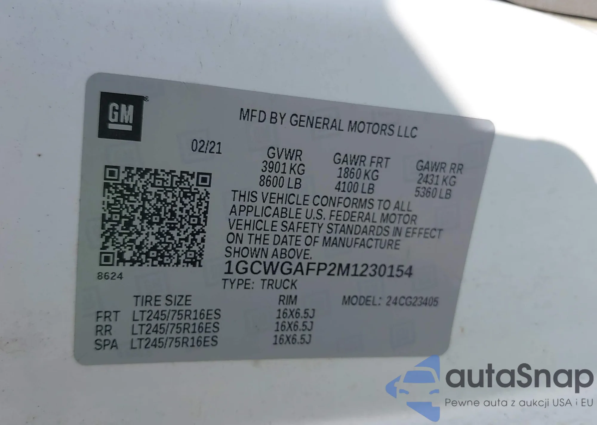 LOT: 43337952 VIN: 1GCWGAFP2M1230154