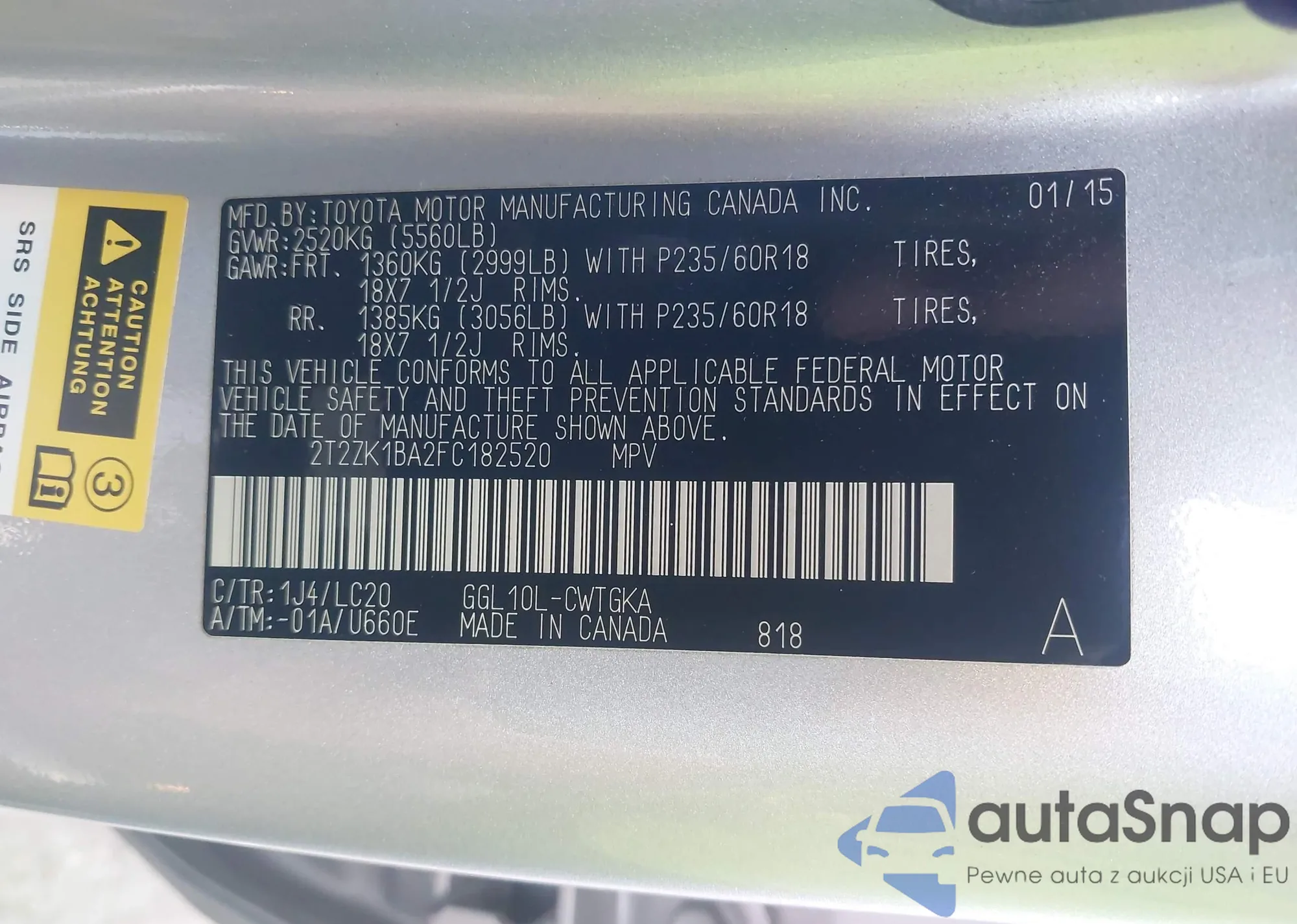 • VIN 2T3RWRFV7MW127472