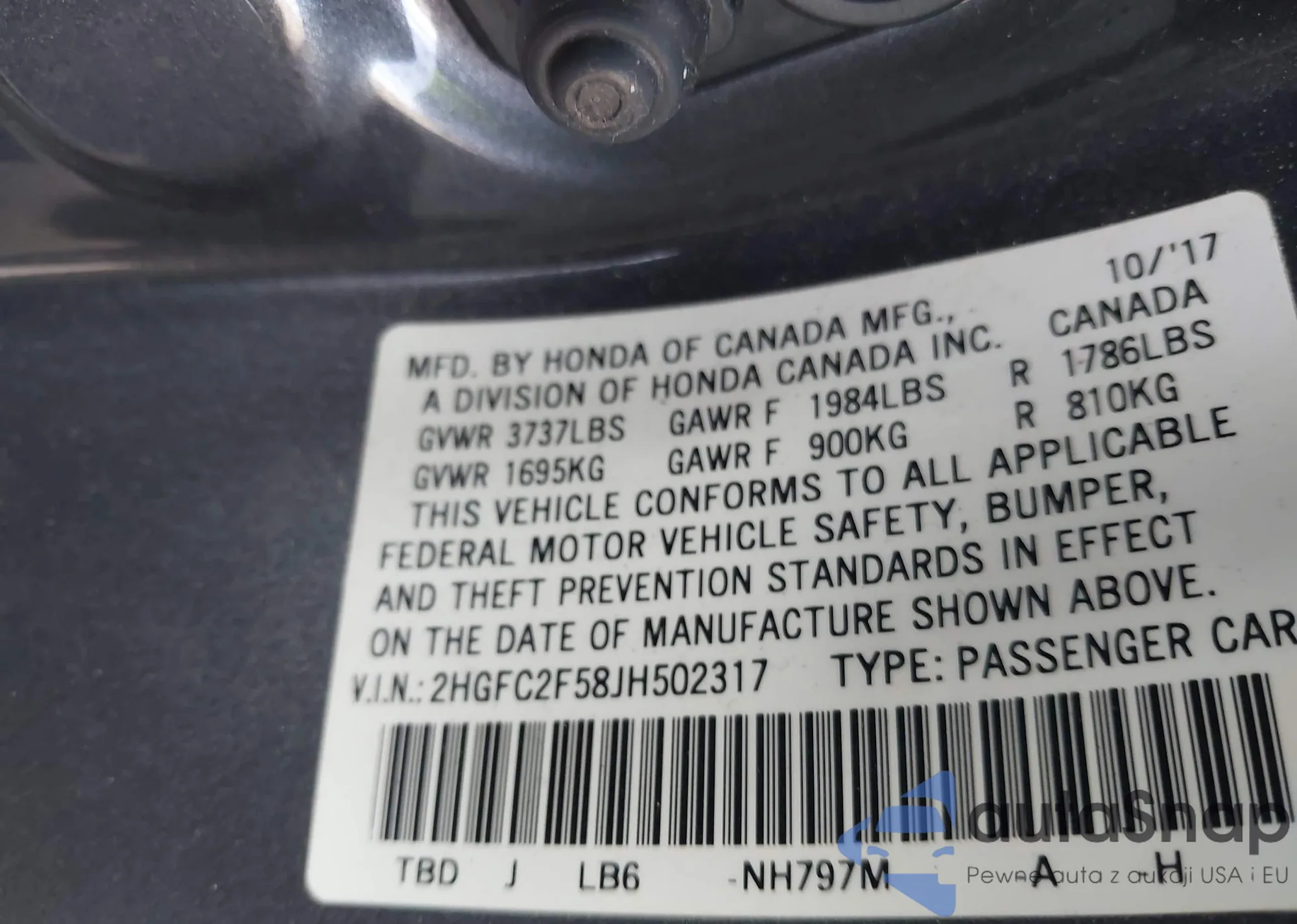 • VIN 2HGFC2F87MH559154