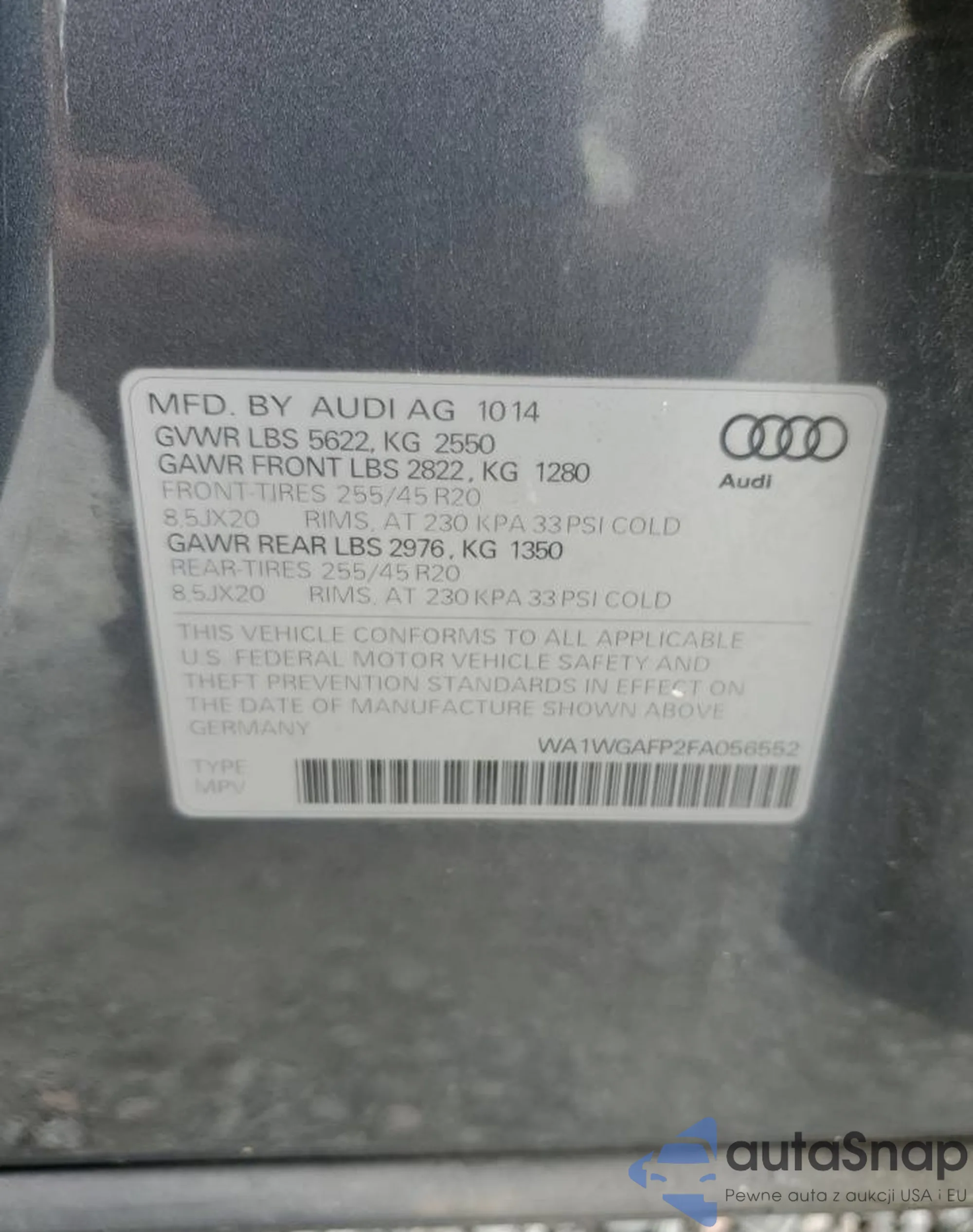 LOT: 71717155 VIN: WA1WGAFP2FA056552