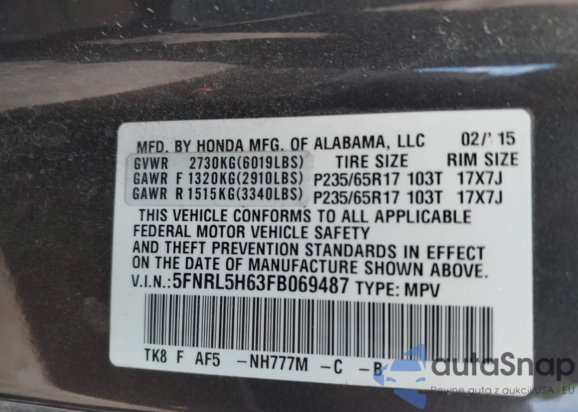 • VIN 5XYZW4LAXHG384750