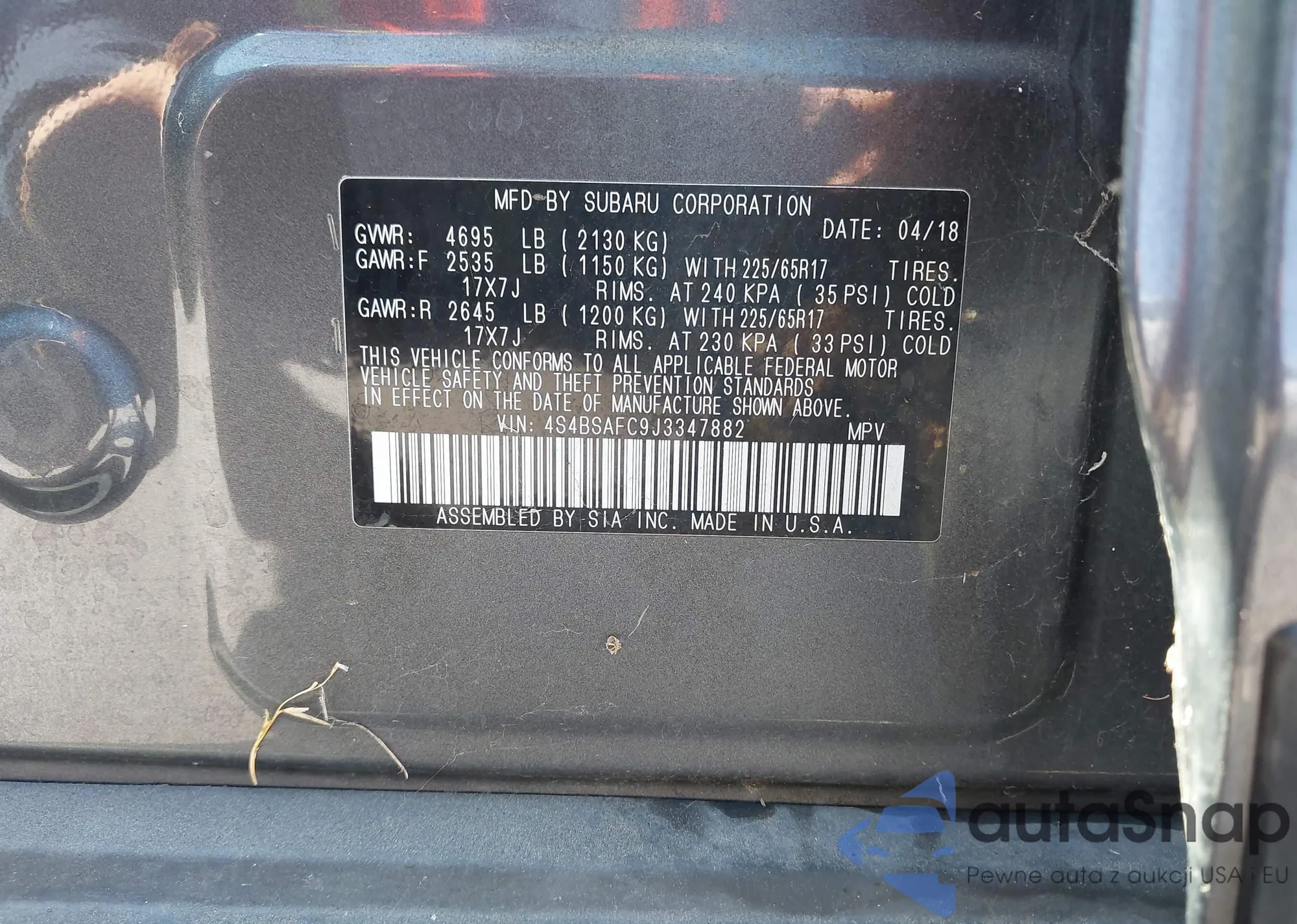 • VIN 4S4BSAFC9J3347882