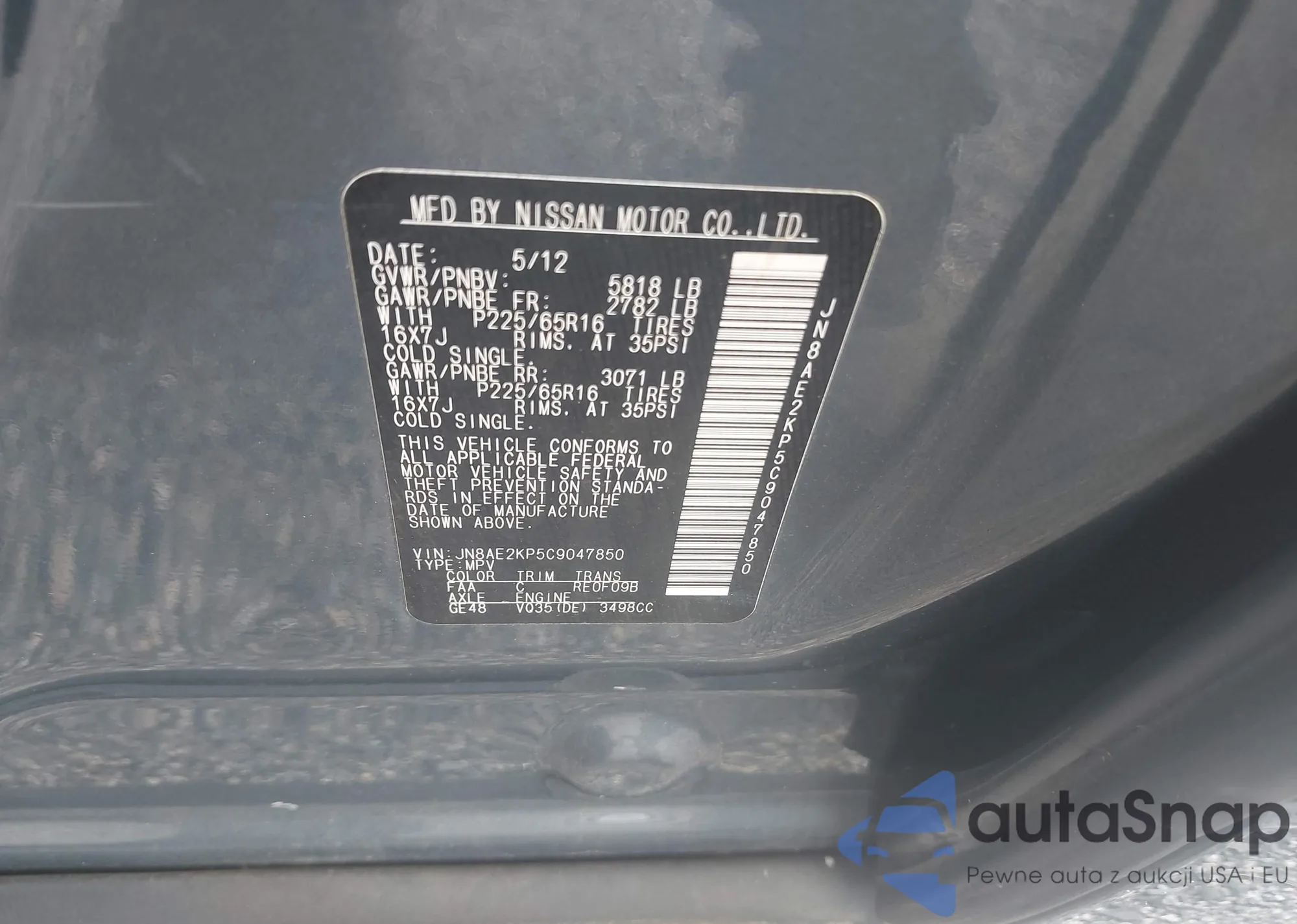 LOT: 43427454 VIN: JN8AE2KP5C9047850