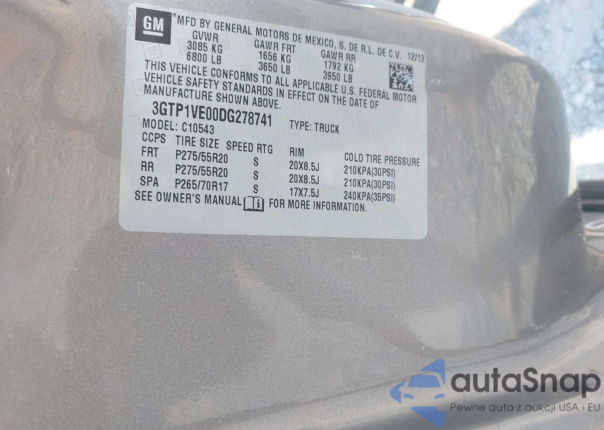 LOT: 43048180 VIN: 3GTP1VE00DG278741