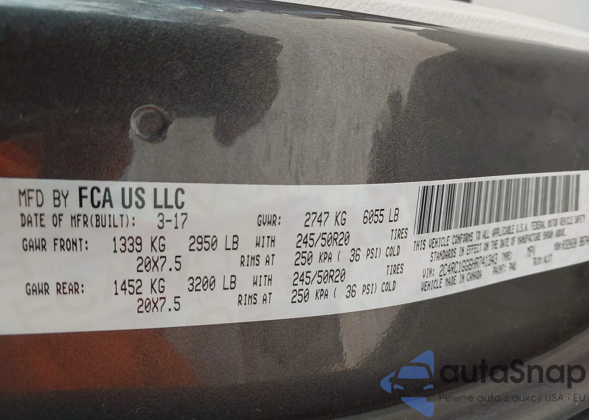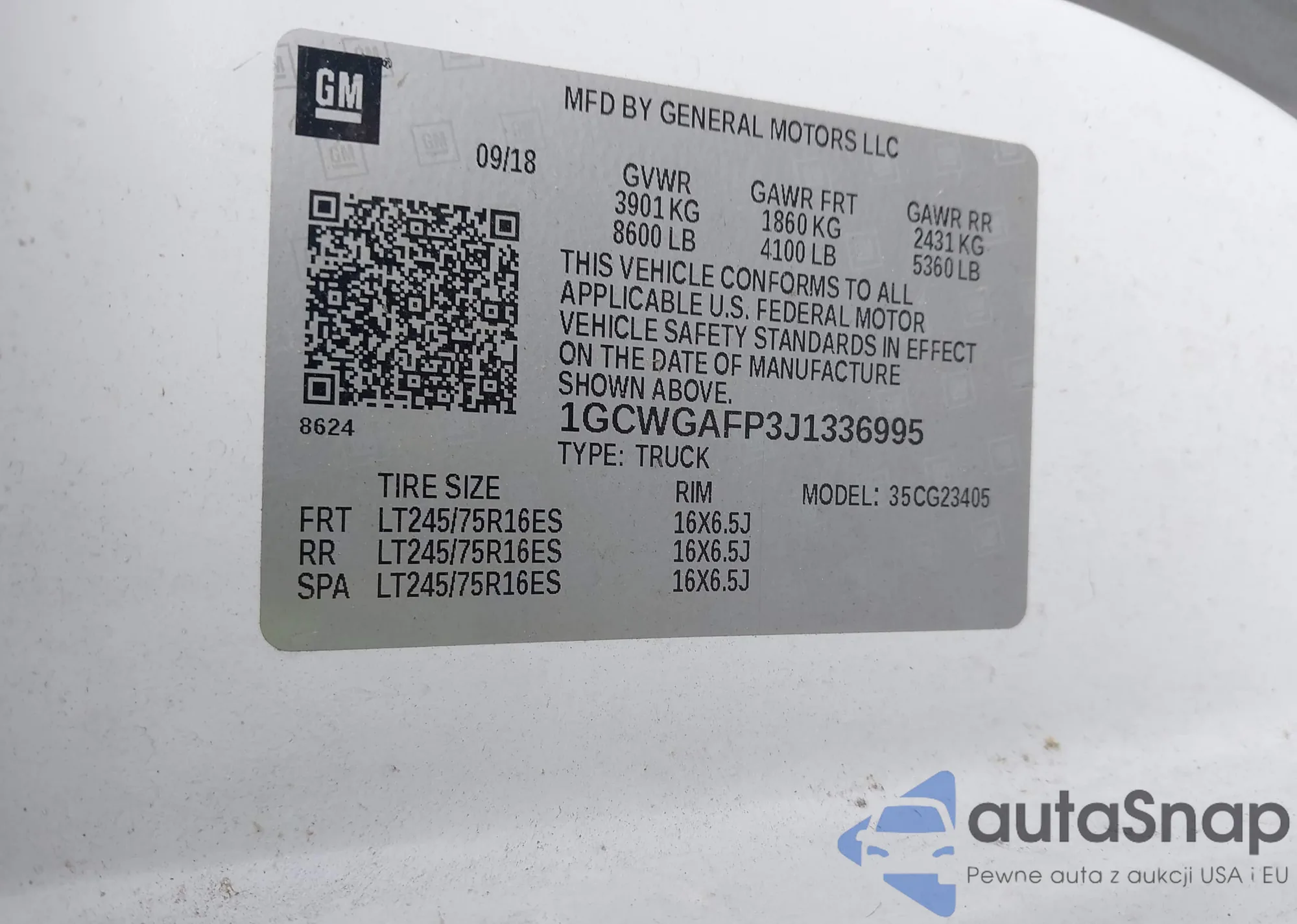 LOT: 42890857 VIN: 1GCWGAFP3J1336995