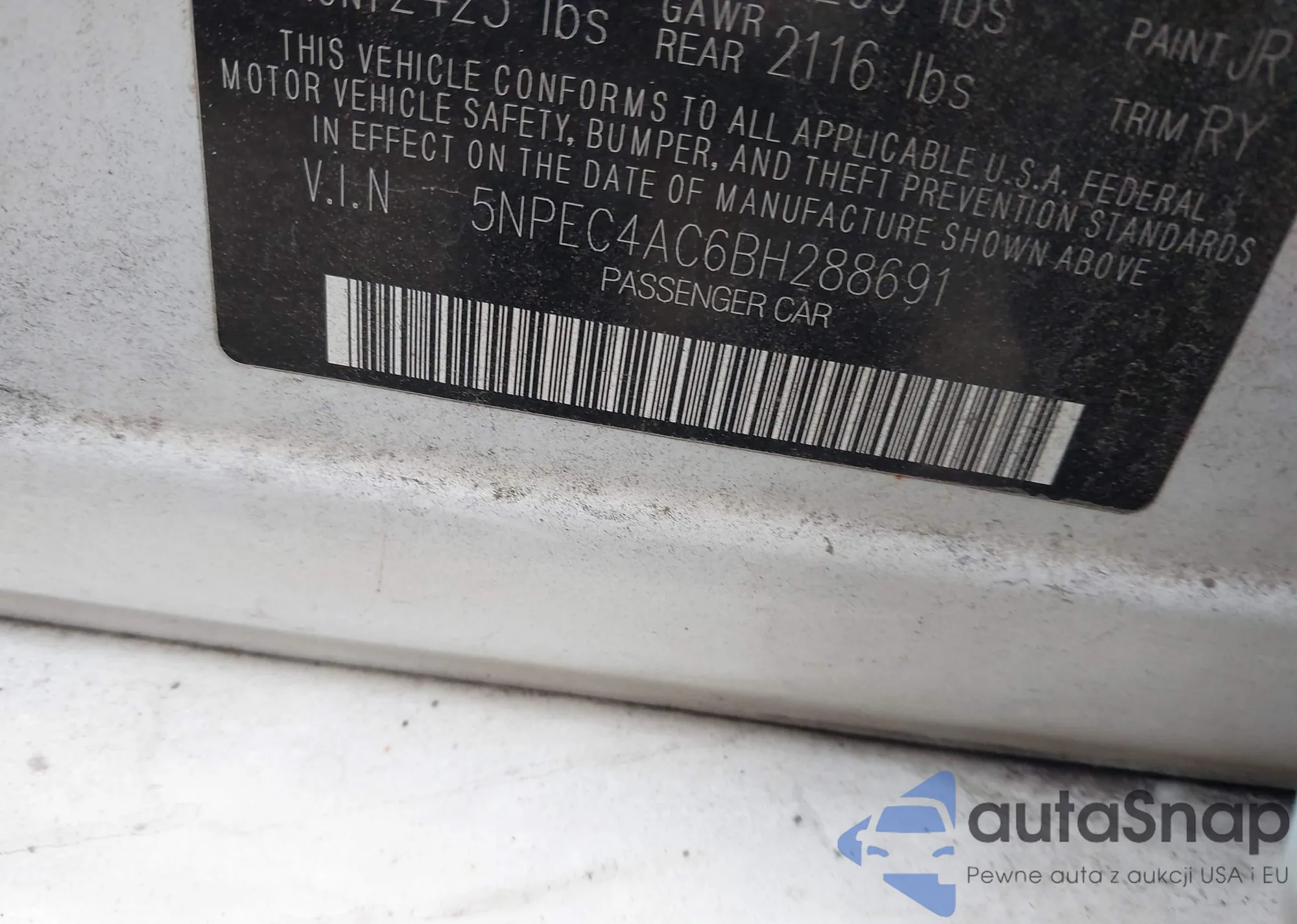 • VIN 5NPEC4AC6BH288691