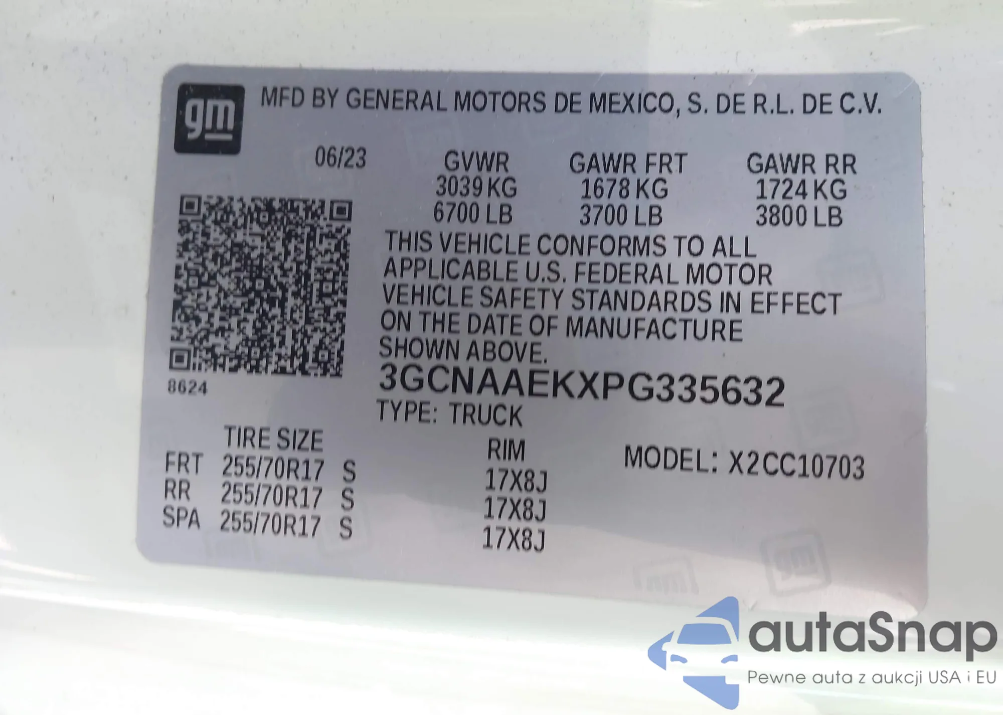 LOT: 43253623 VIN: 3GCNAAEKXPG335632