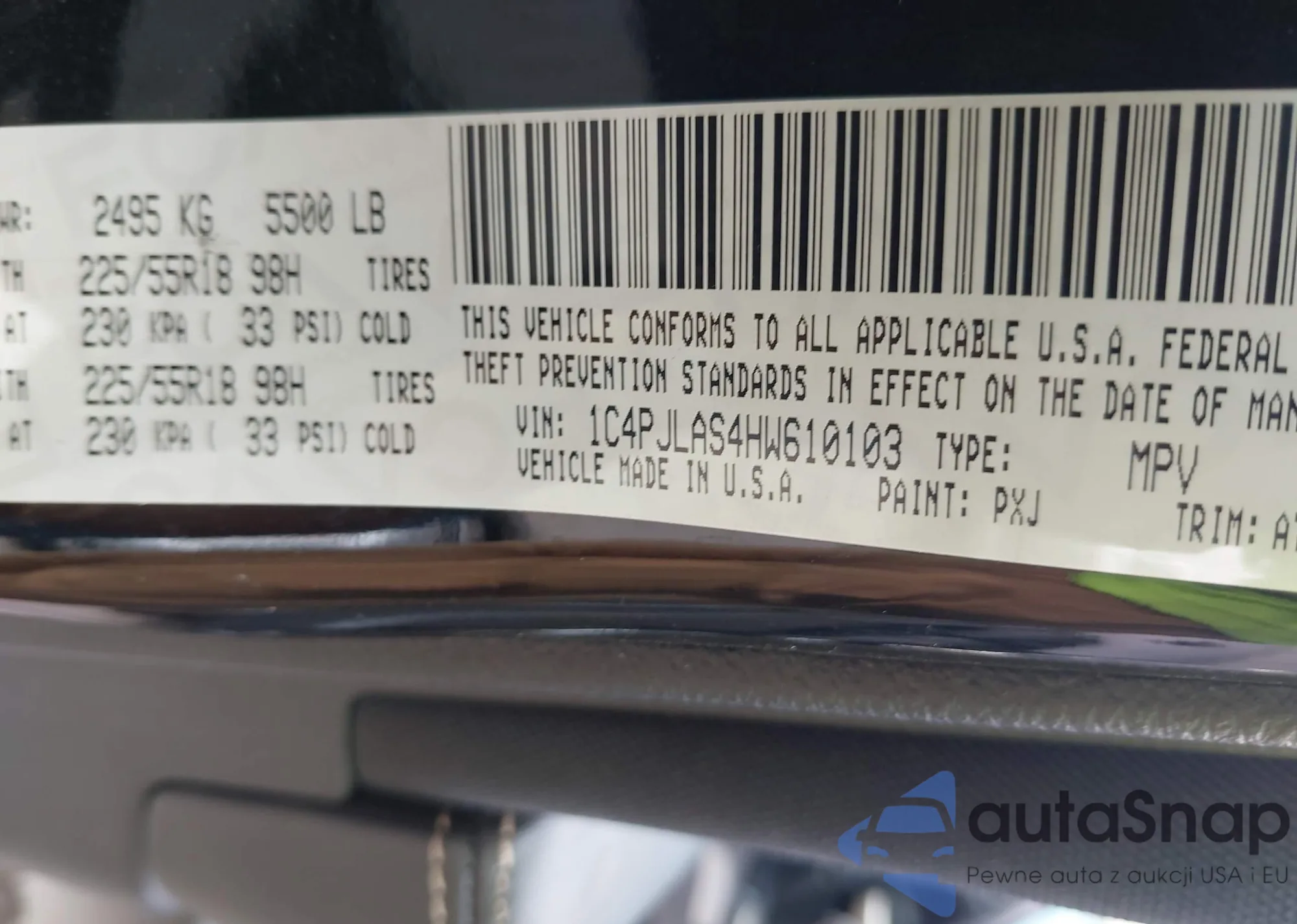 • VIN 1C4PJLAS4HW610103