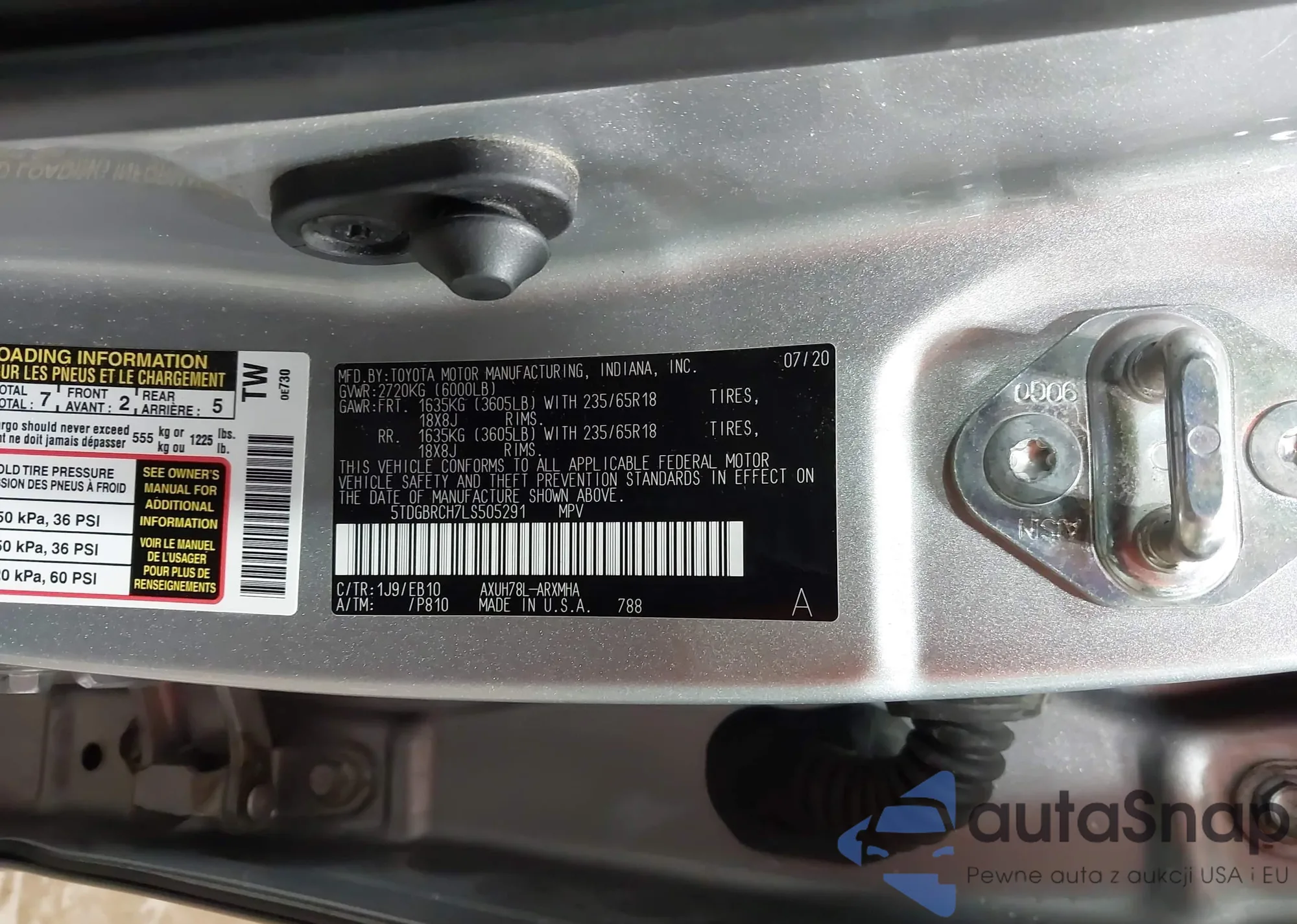 LOT: 43143050 VIN: 5FPYK3F72LB004650