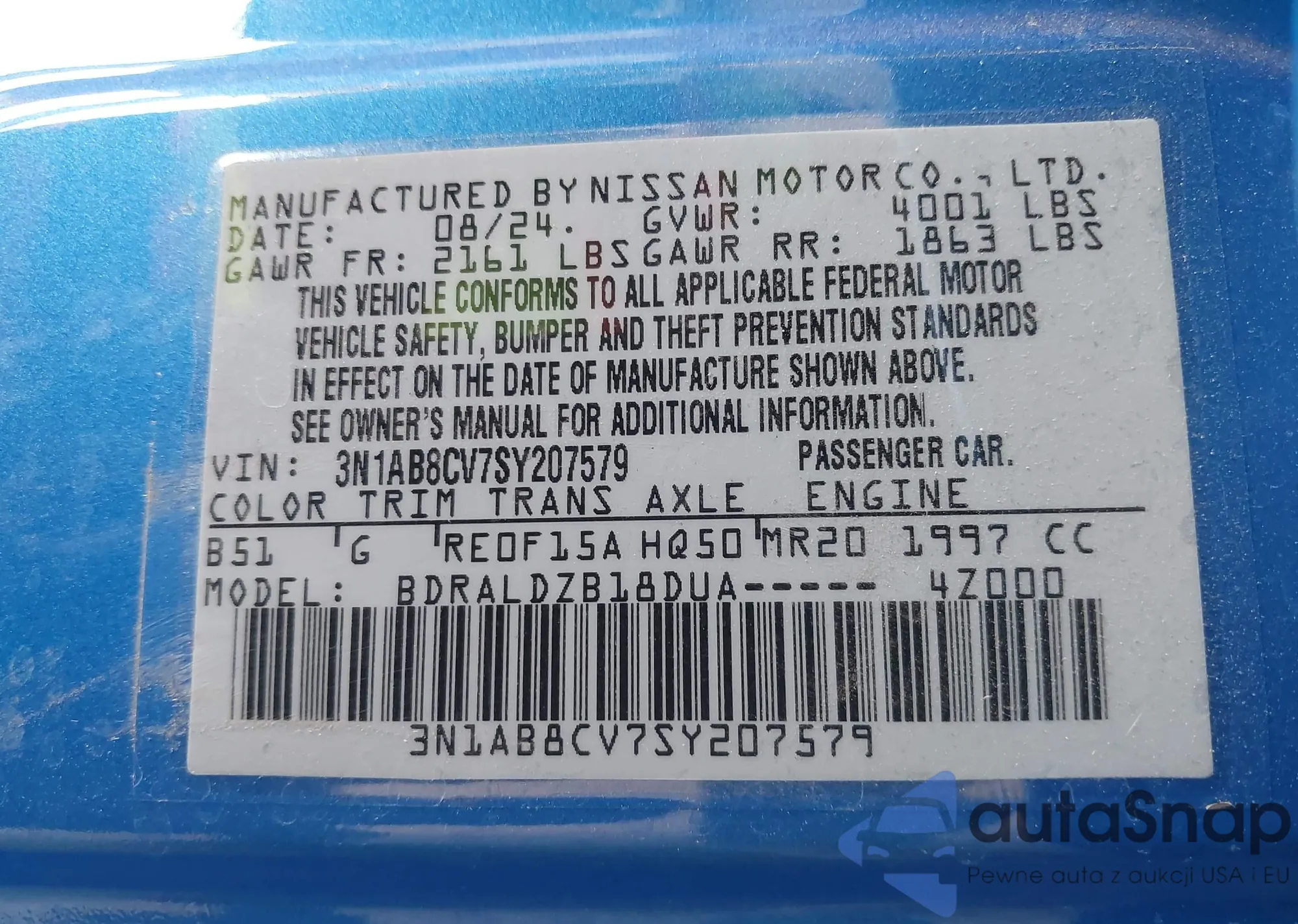 • VIN 3N1AB8CV7SY207579