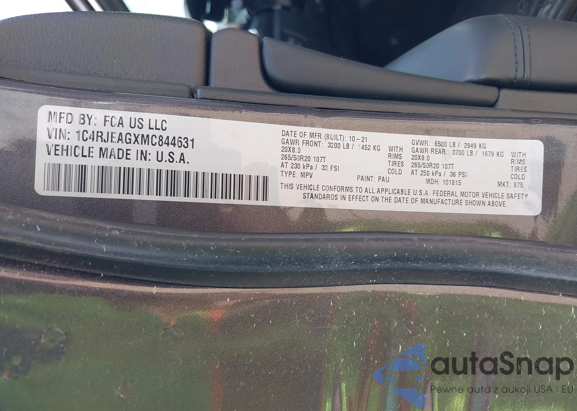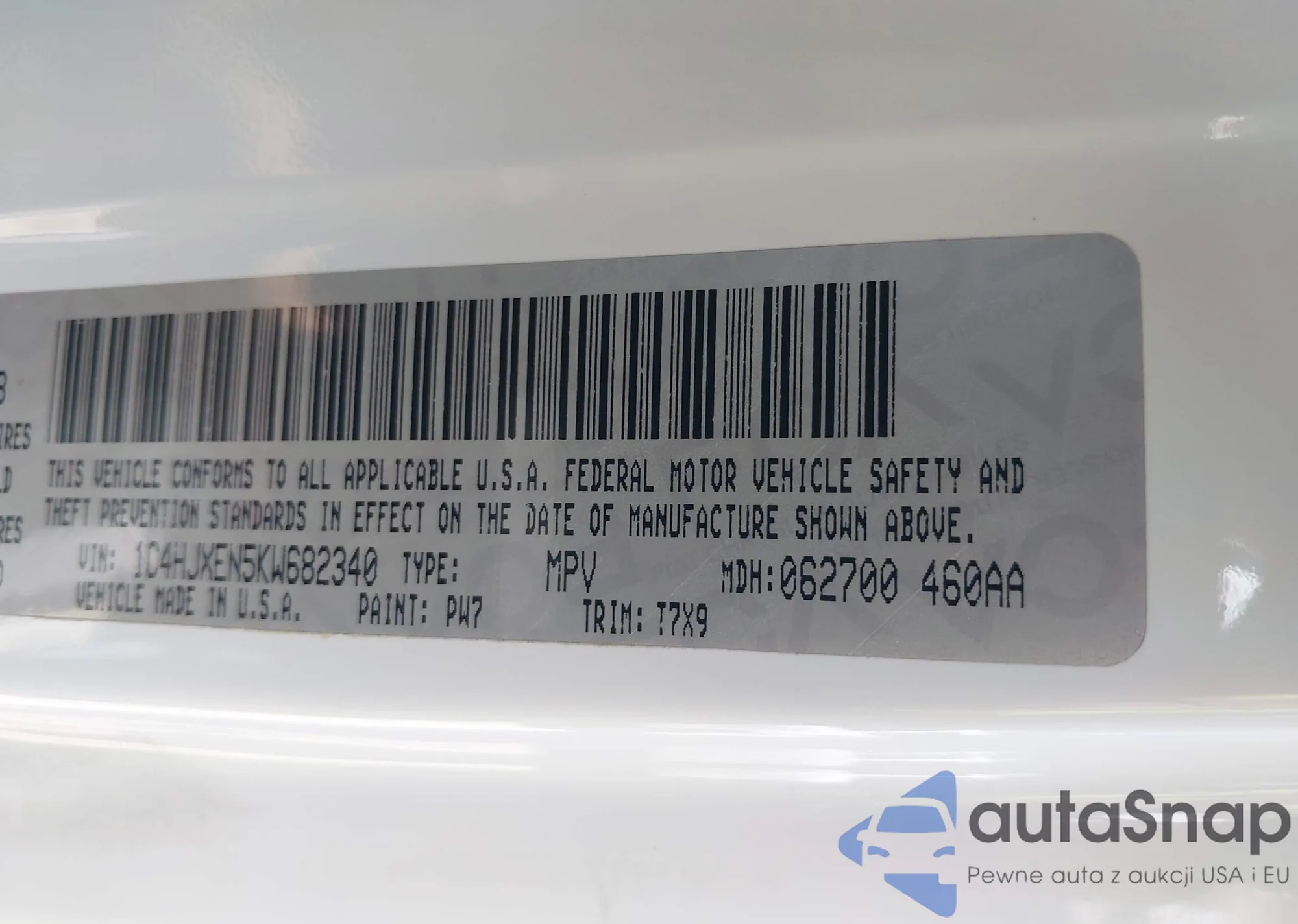 LOT: 43317402 VIN: 1C4HJXEN5KW682340