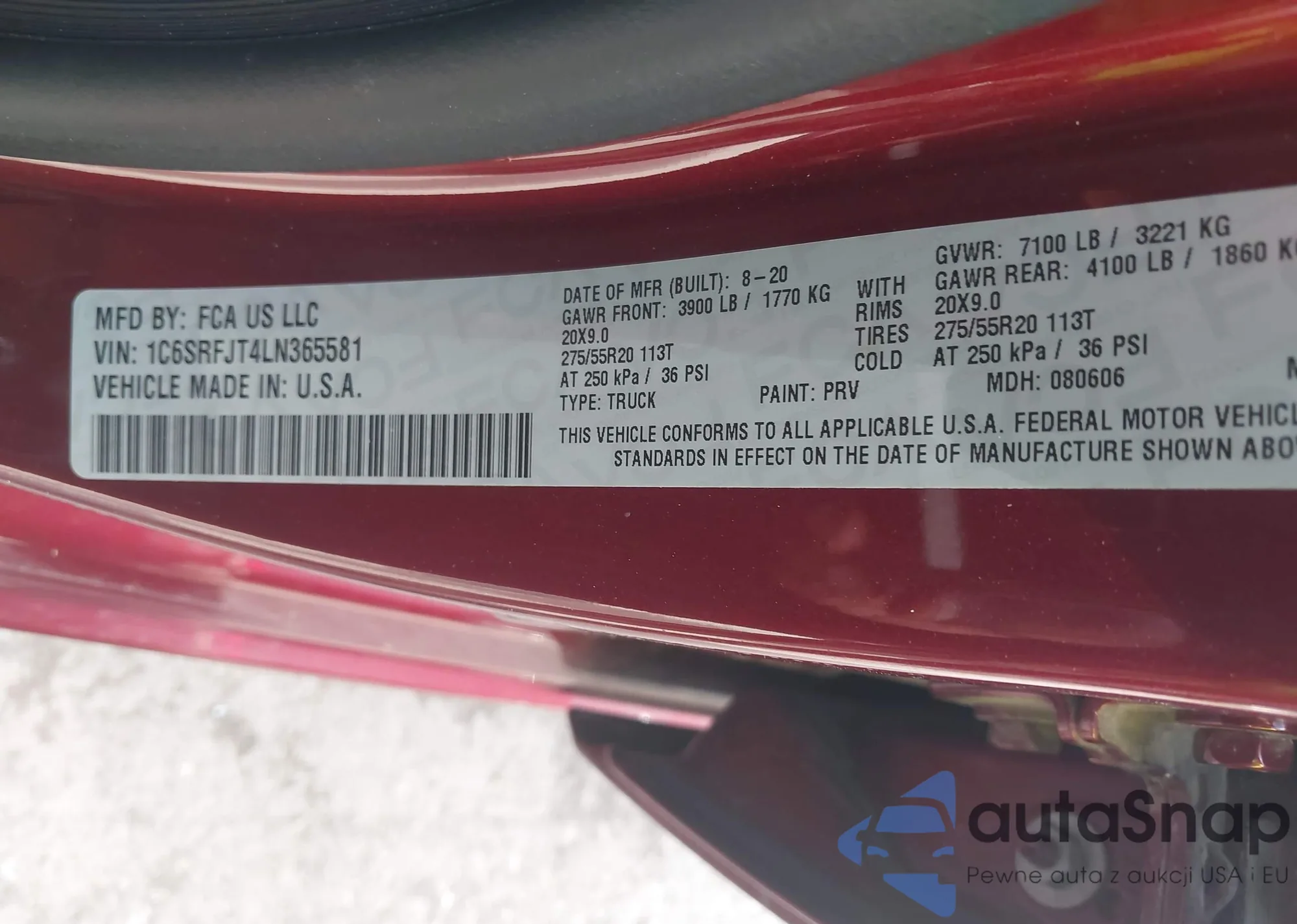 • VIN 1C6SRFJT4LN365581