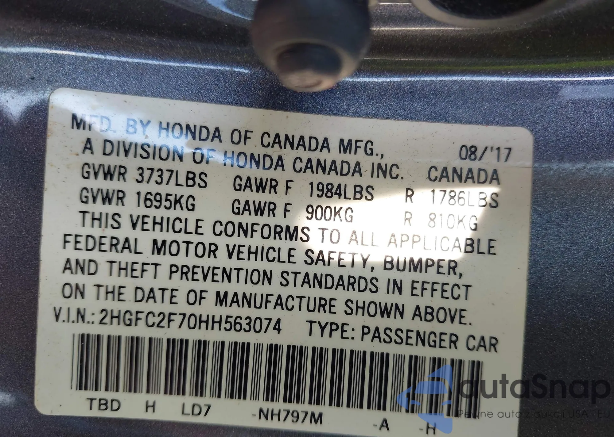 • VIN 2HGFC2F70HH563074