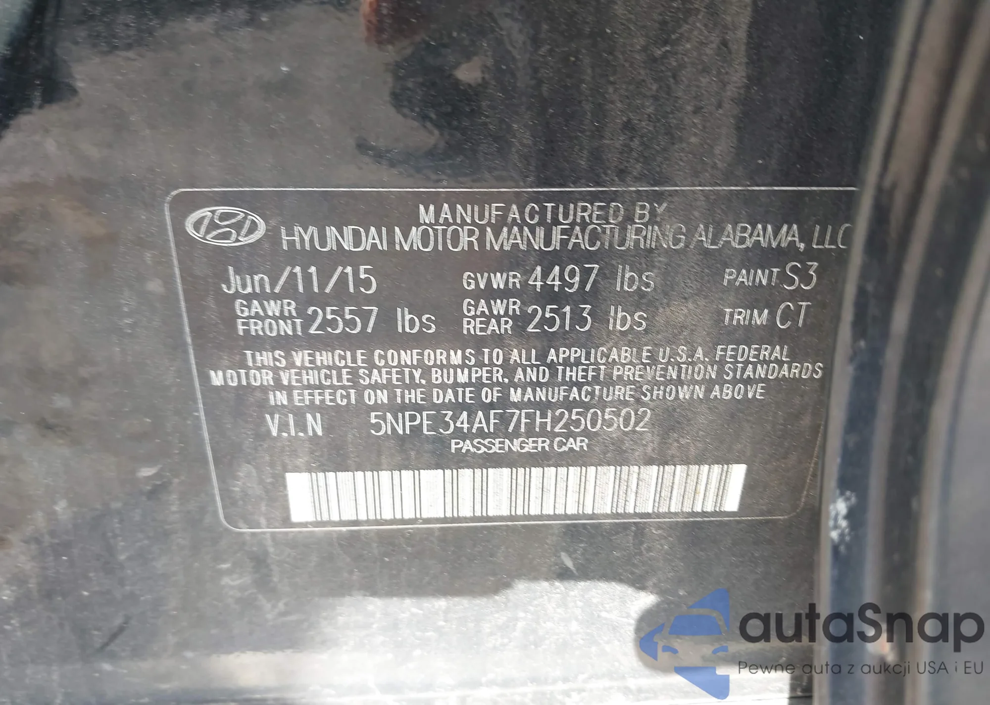 • VIN 5NPE34AF7FH250502