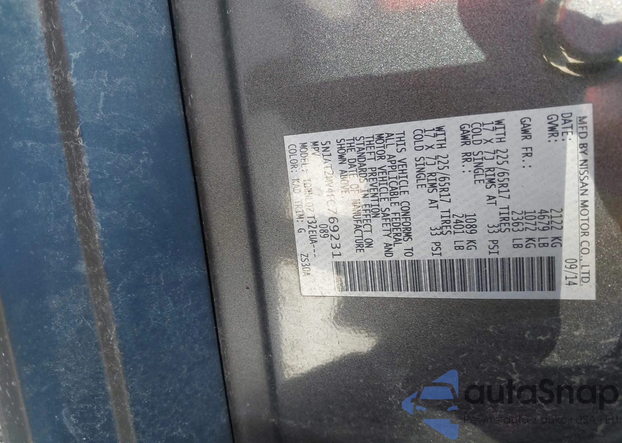 • VIN 5N1AT2MV4FC769231