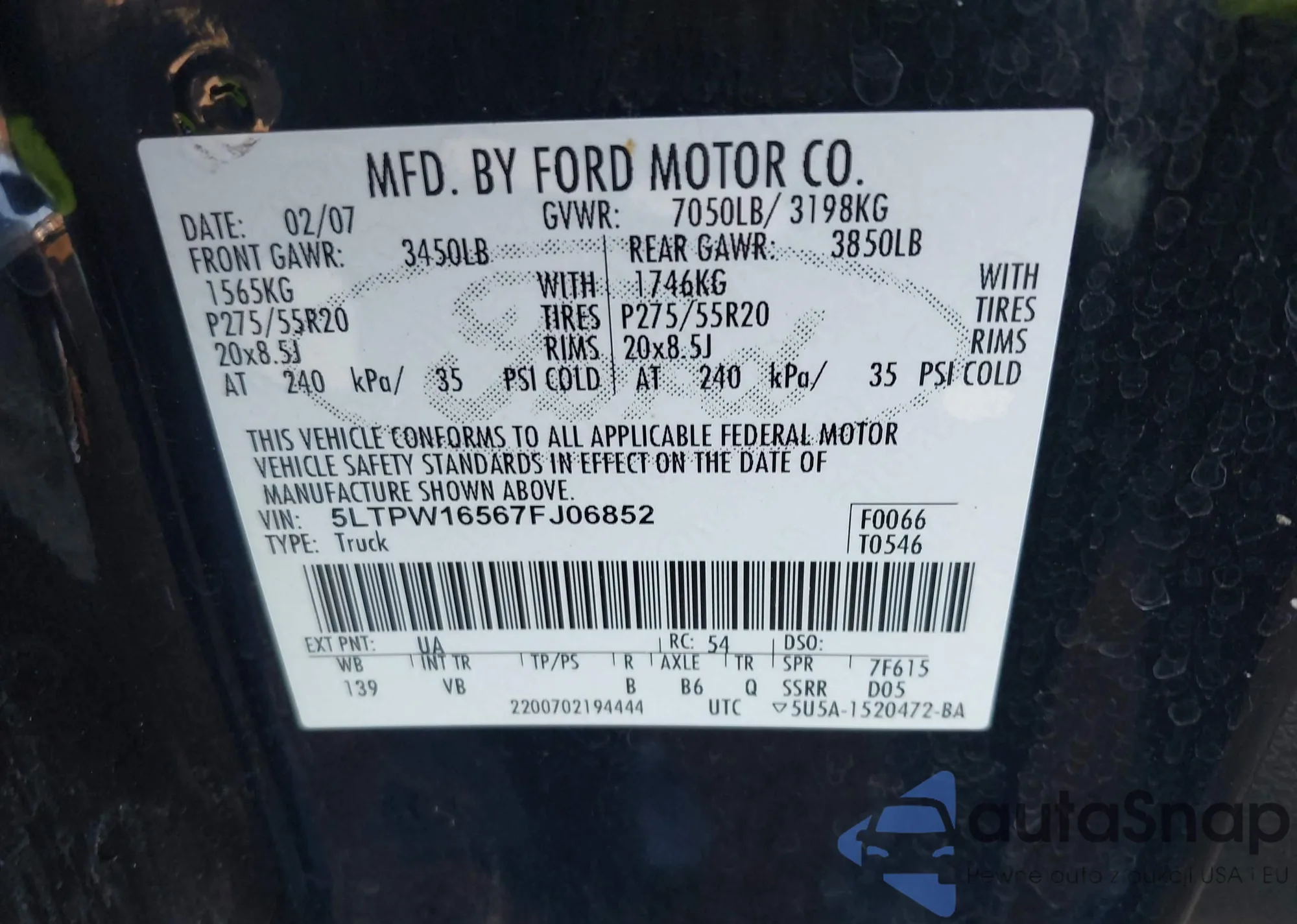 • VIN 5LTPW16567FJ06852