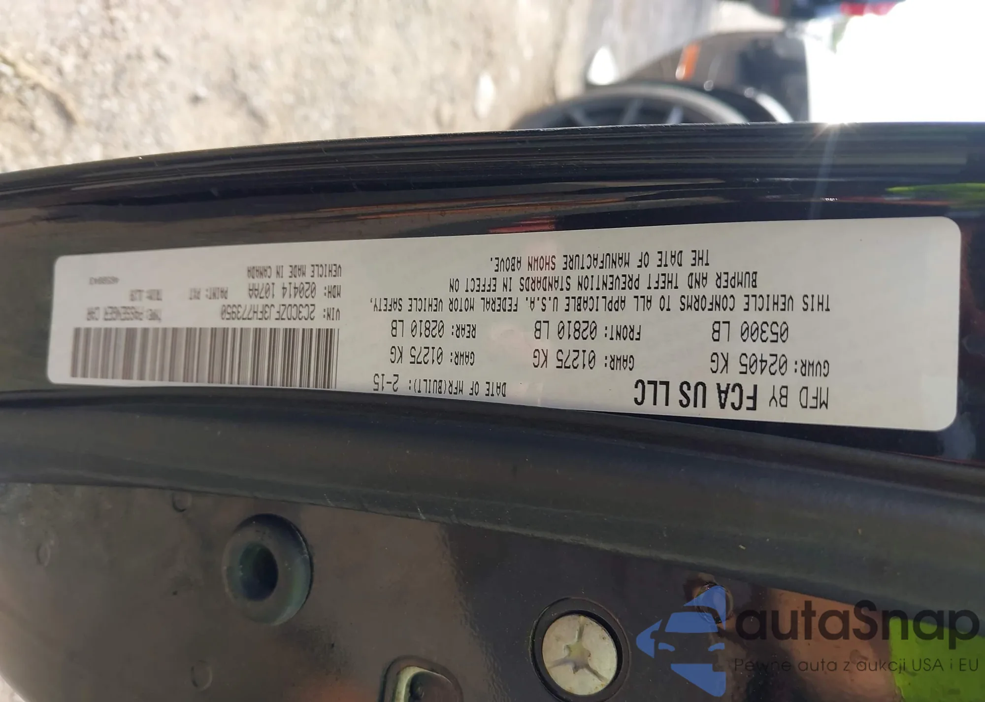 LOT: 42718532 VIN: 2C3CDZFJ3FH773950
