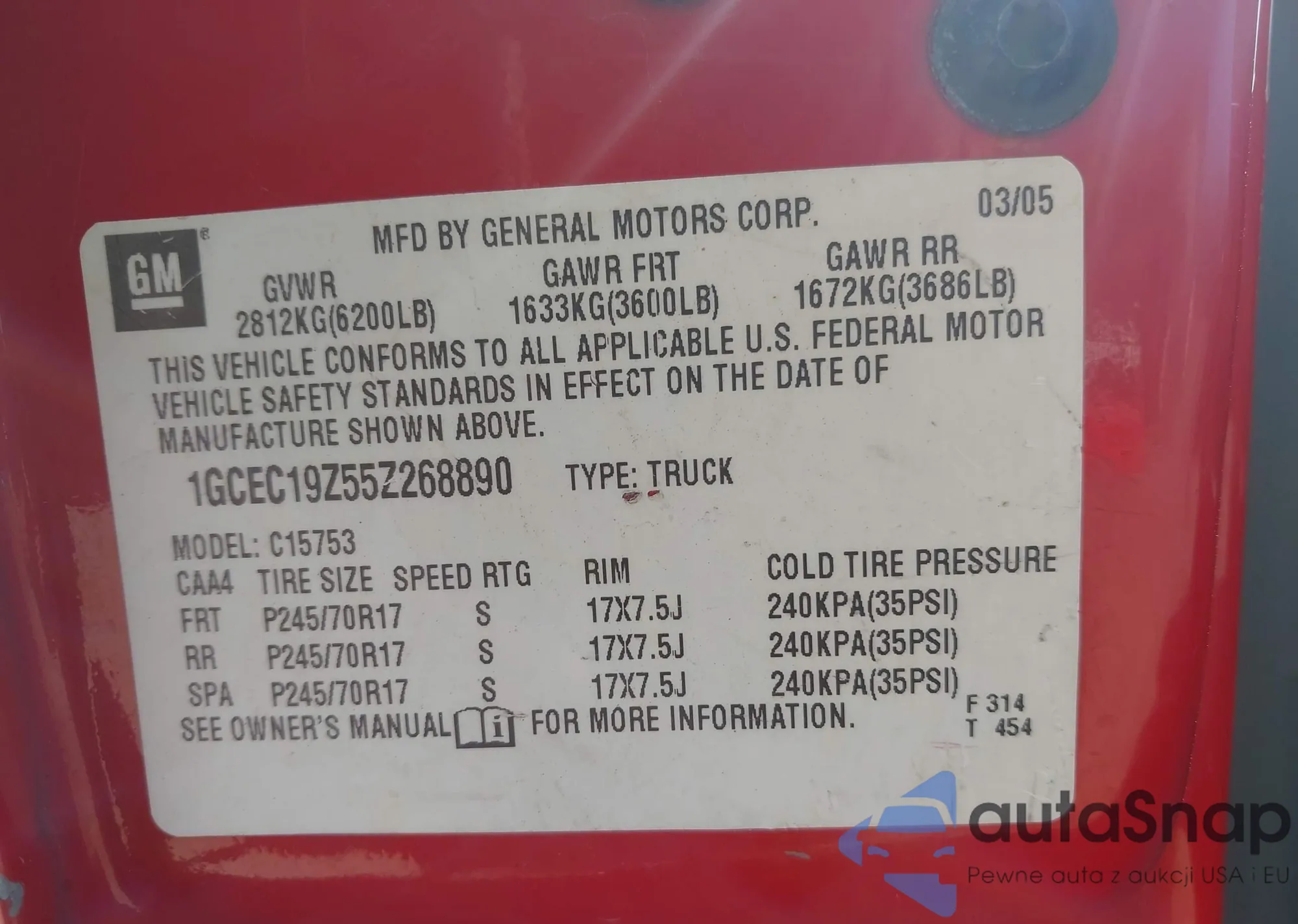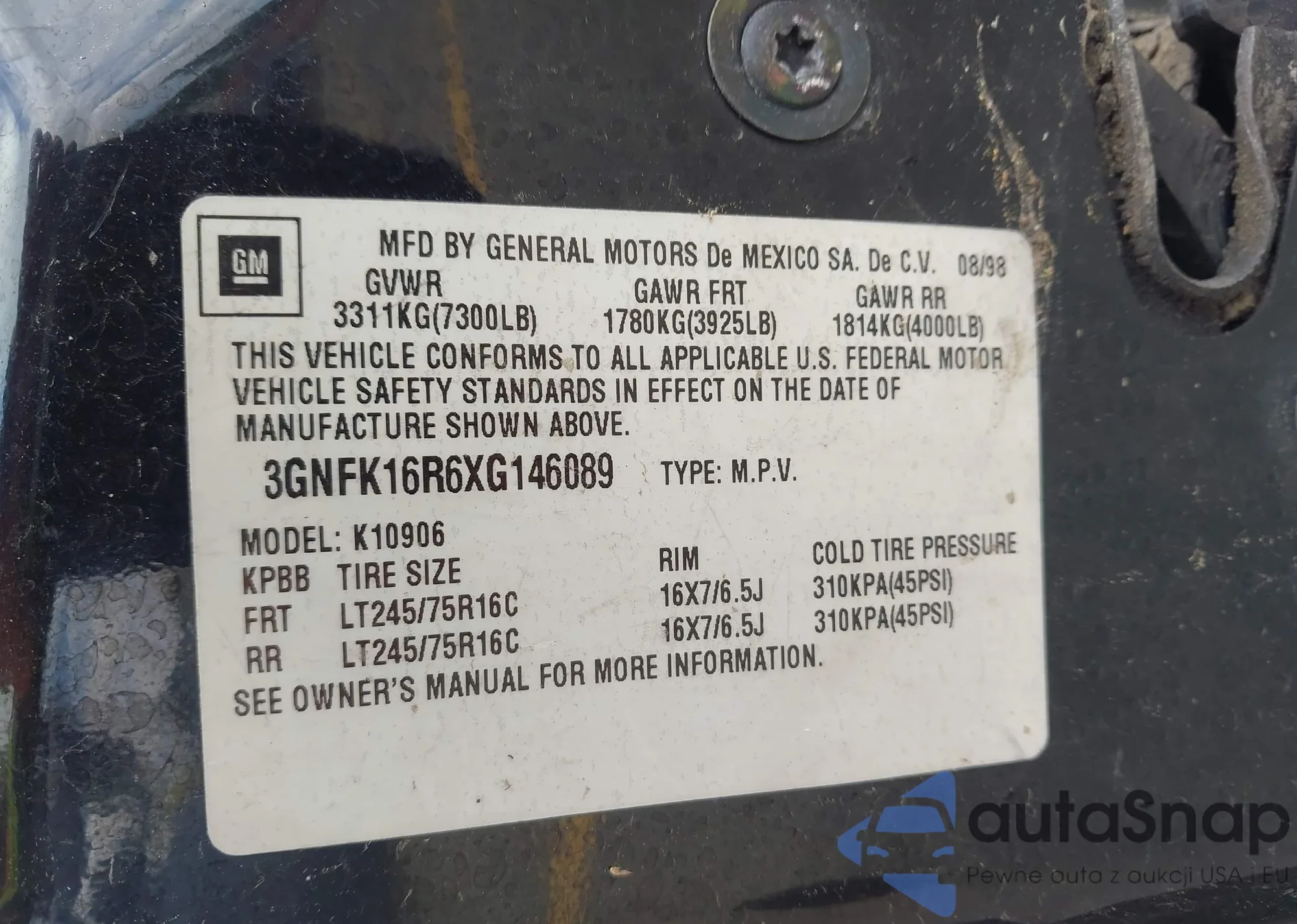 LOT: 43432599 VIN: 3GNFK16R6XG146089
