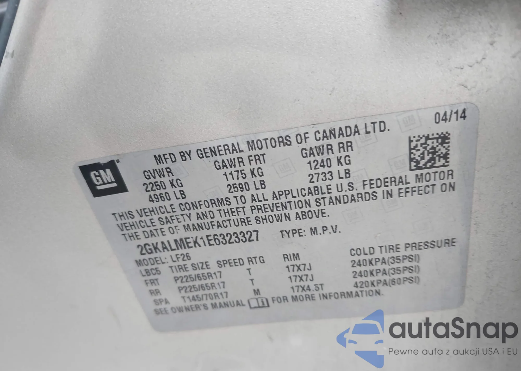 • VIN 2GKALMEK1E6323327