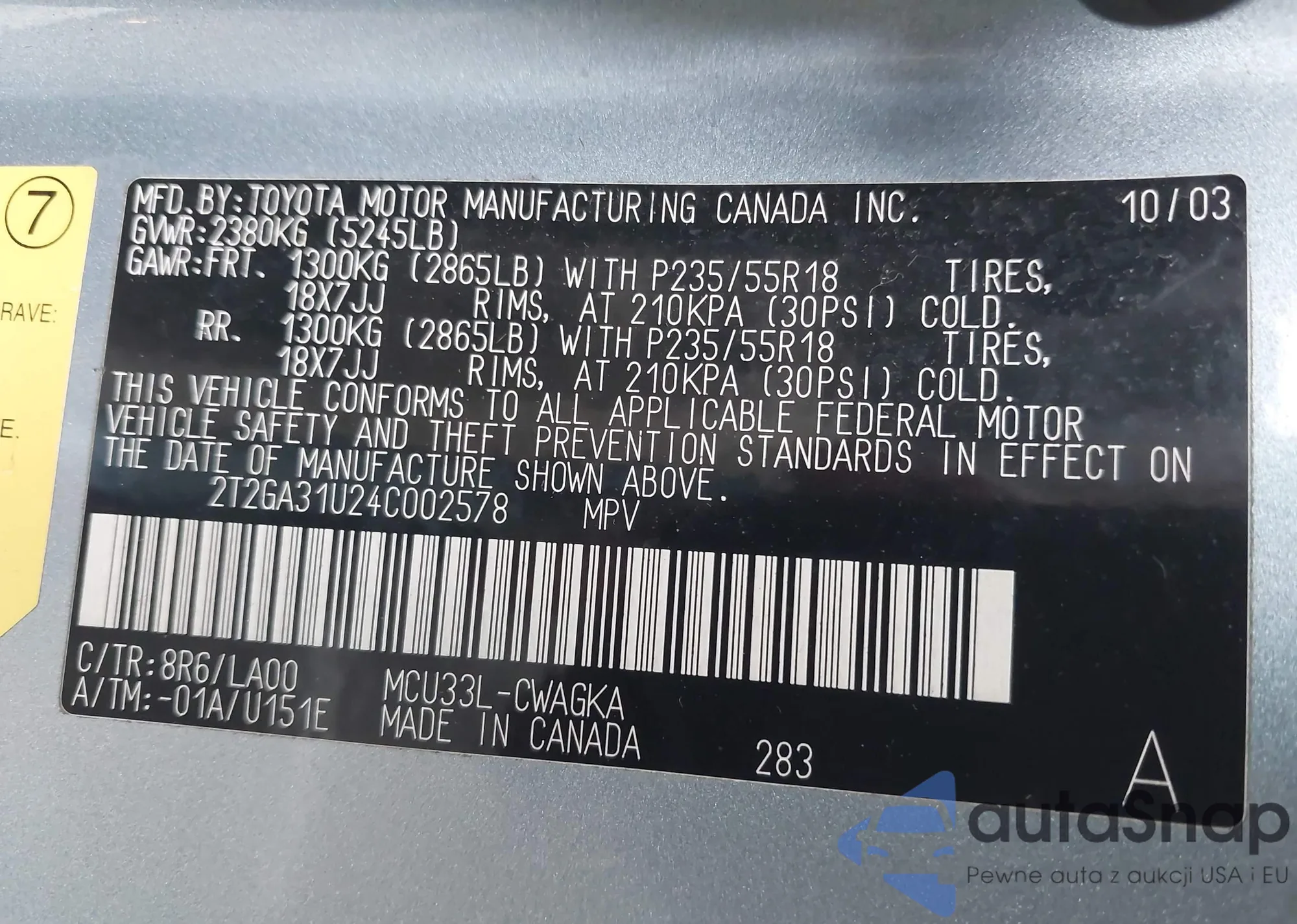 • VIN 2T2GA31U24C002578