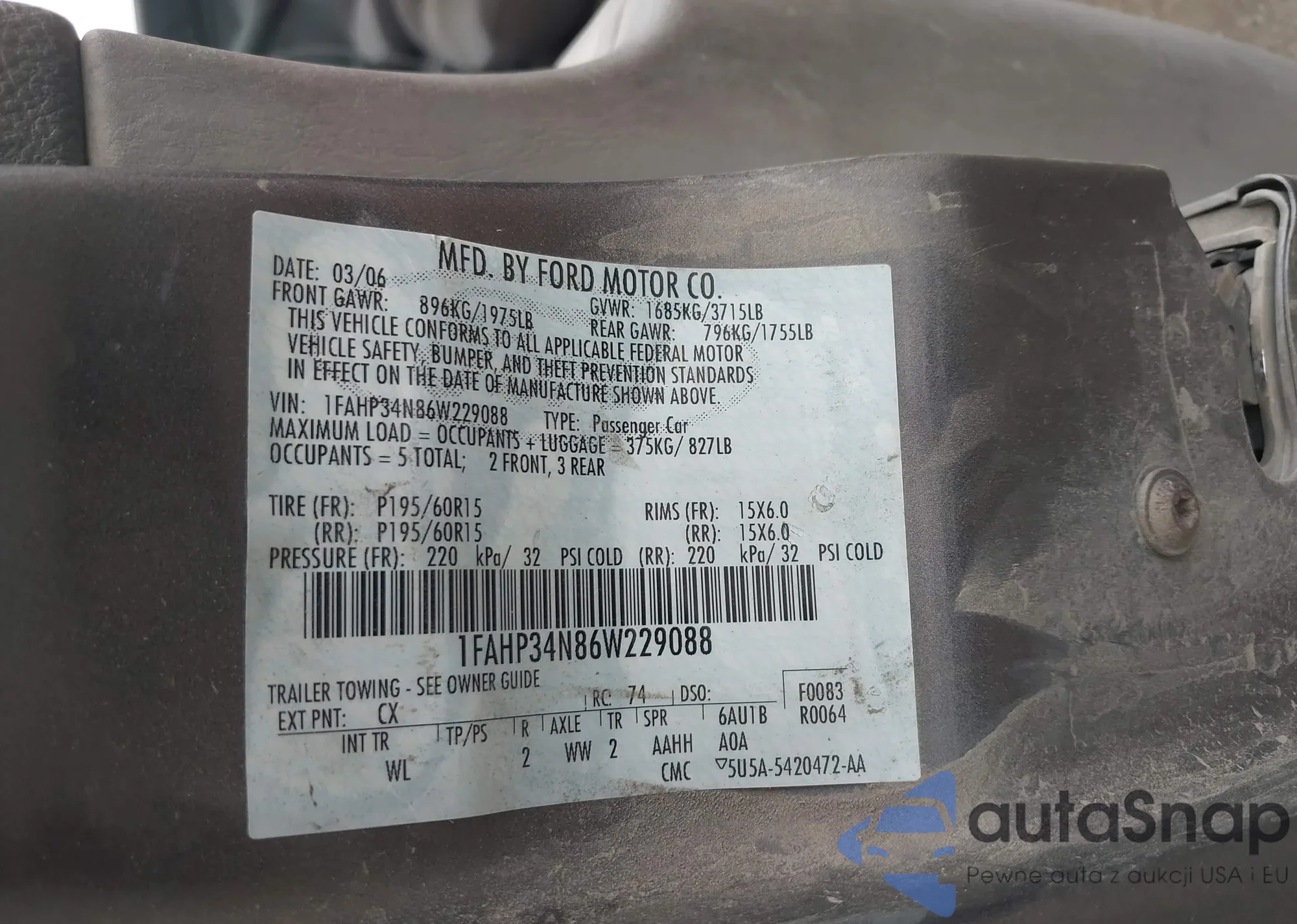 LOT: 42964706 VIN: 1FAHP34N86W229088