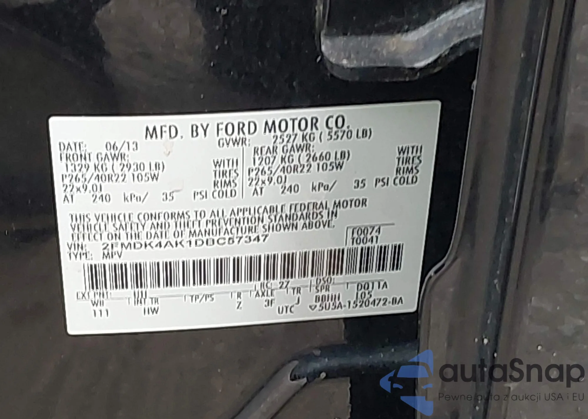 LOT: 43040101 VIN: 2FMDK4AK1DBC57347