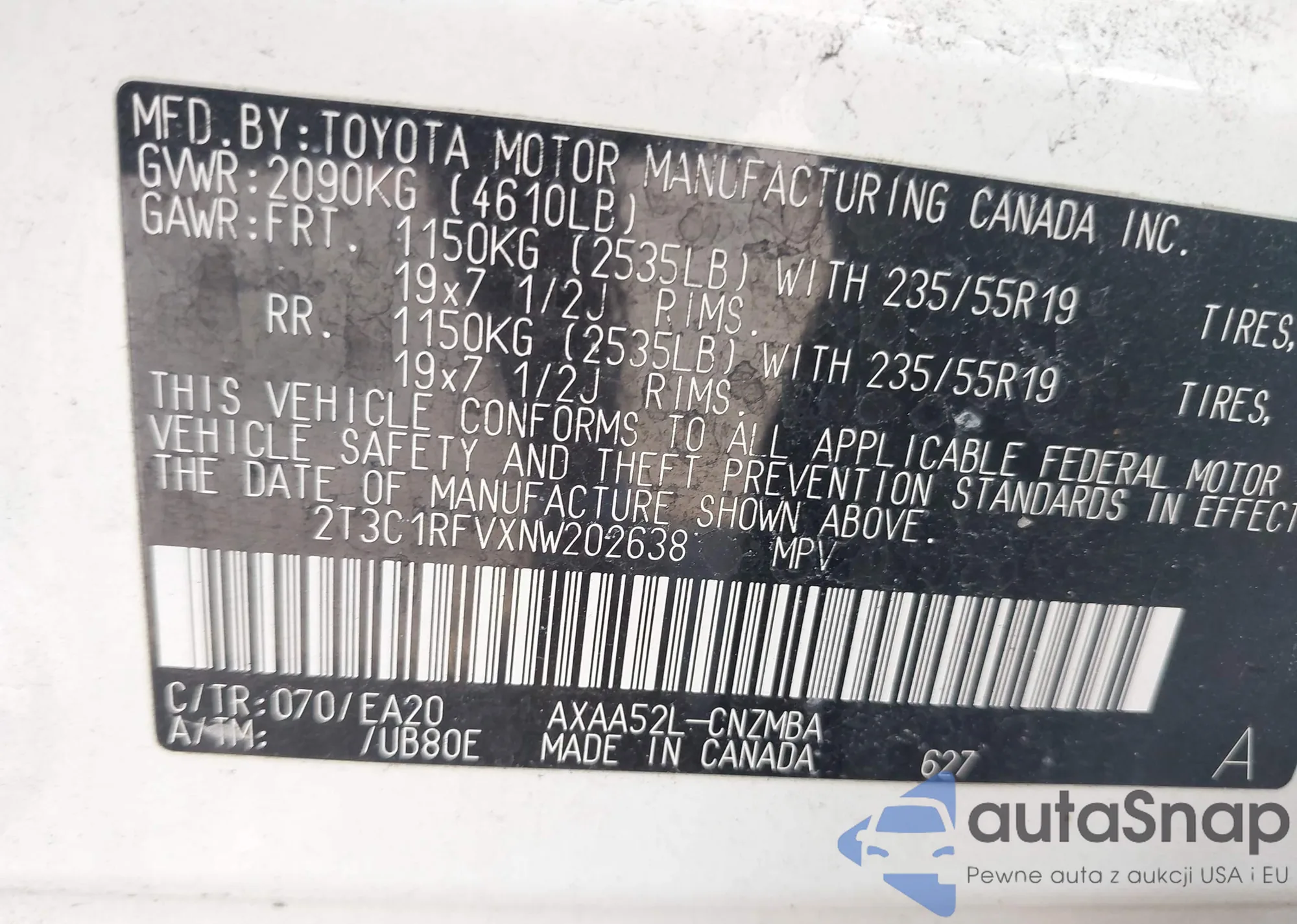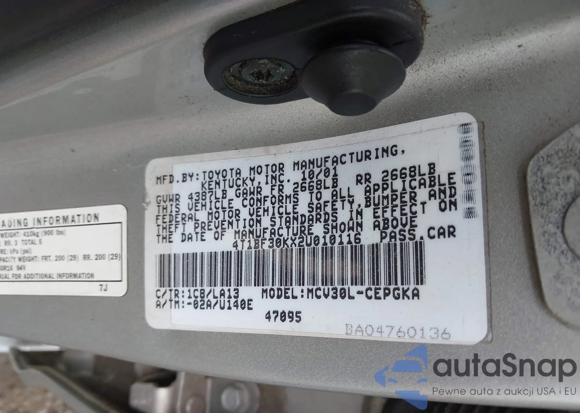 • VIN 4T1BF3EK4AU086101