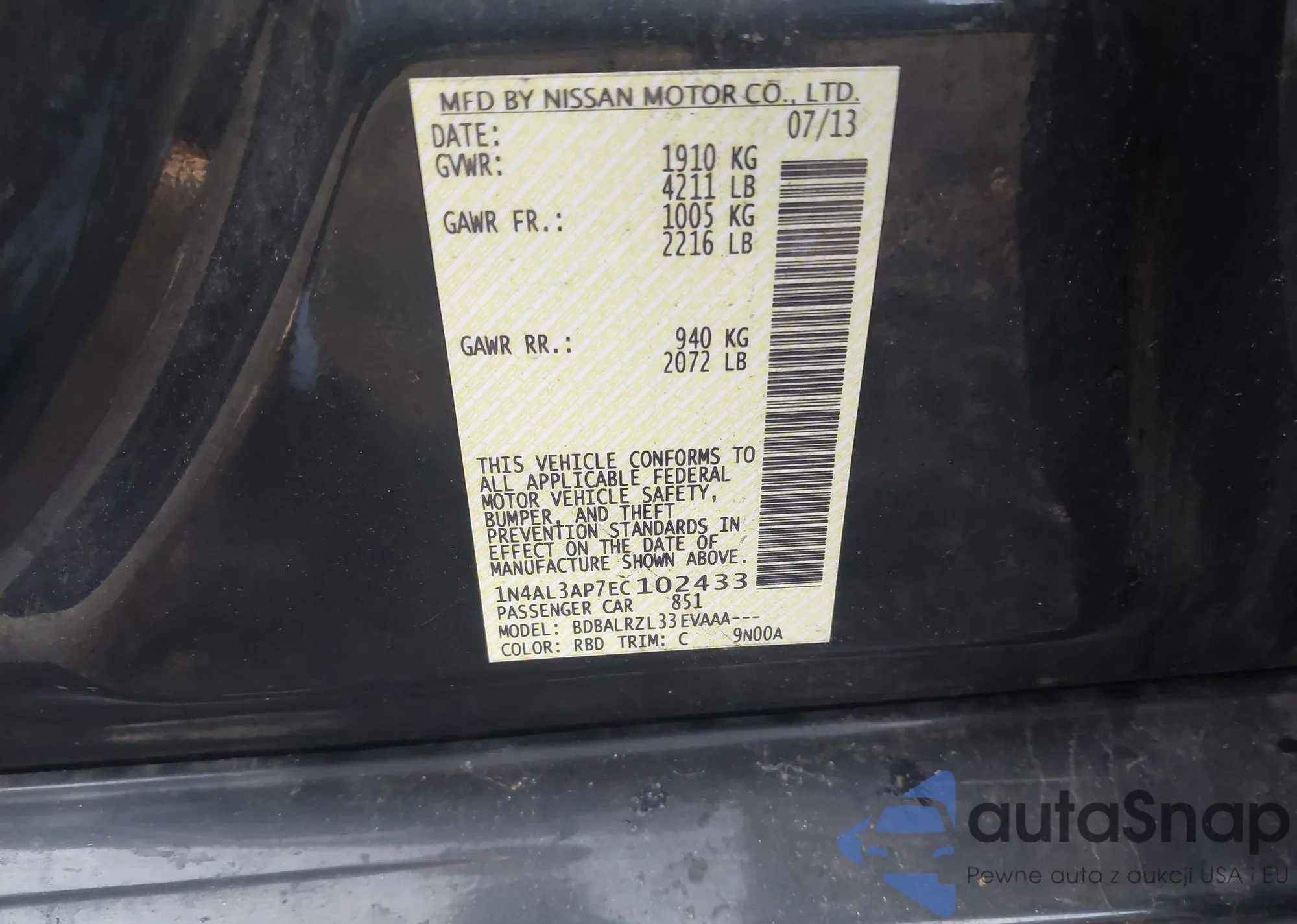 LOT: 43280077 VIN: 4T1B21HK7KU013463