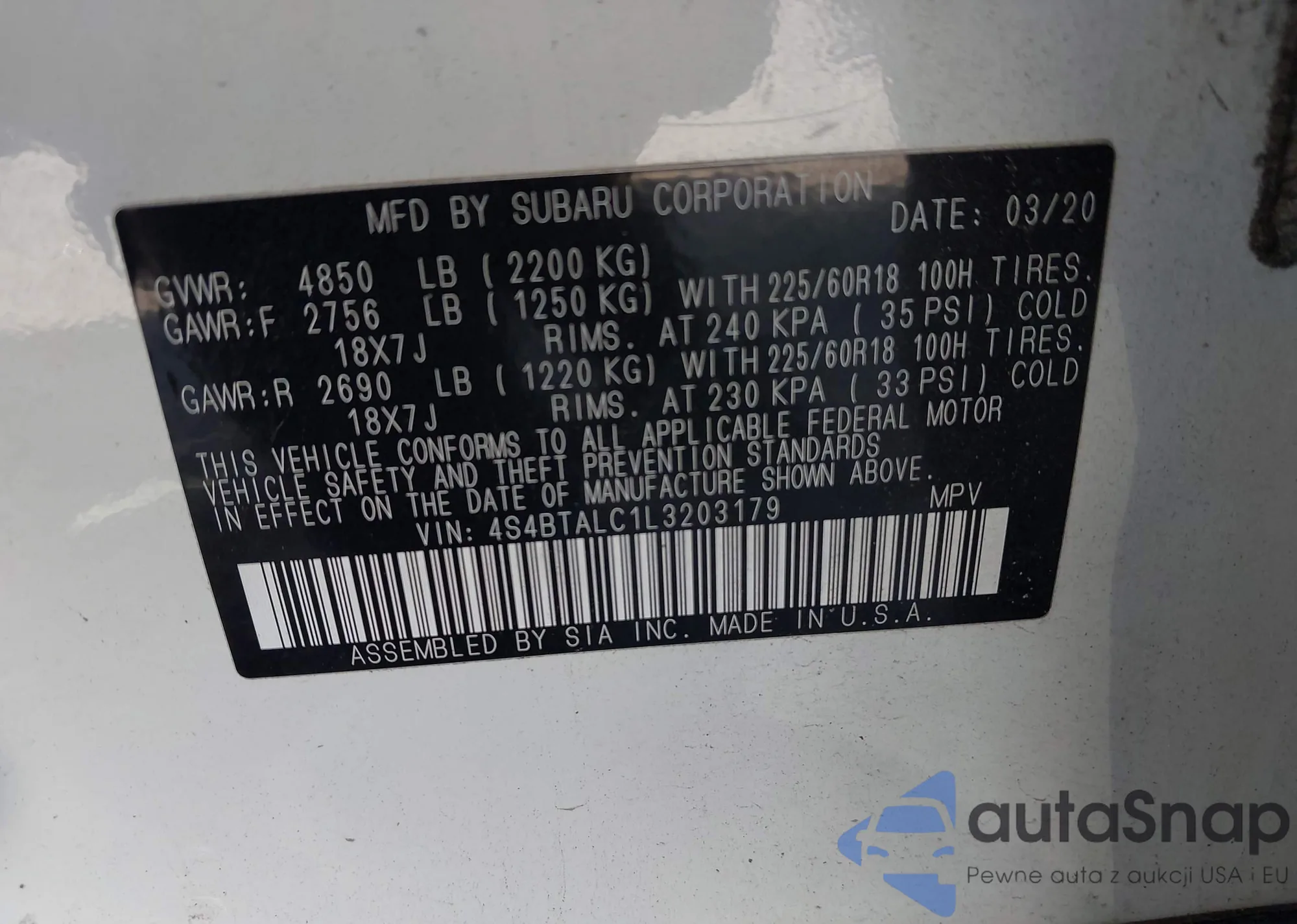 • VIN 4S4BTALC1L3203179