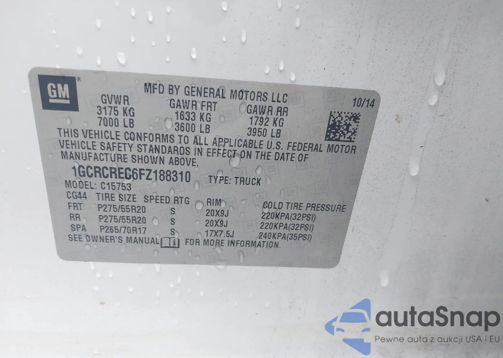 • VIN 3GCPDCEK2RG213748