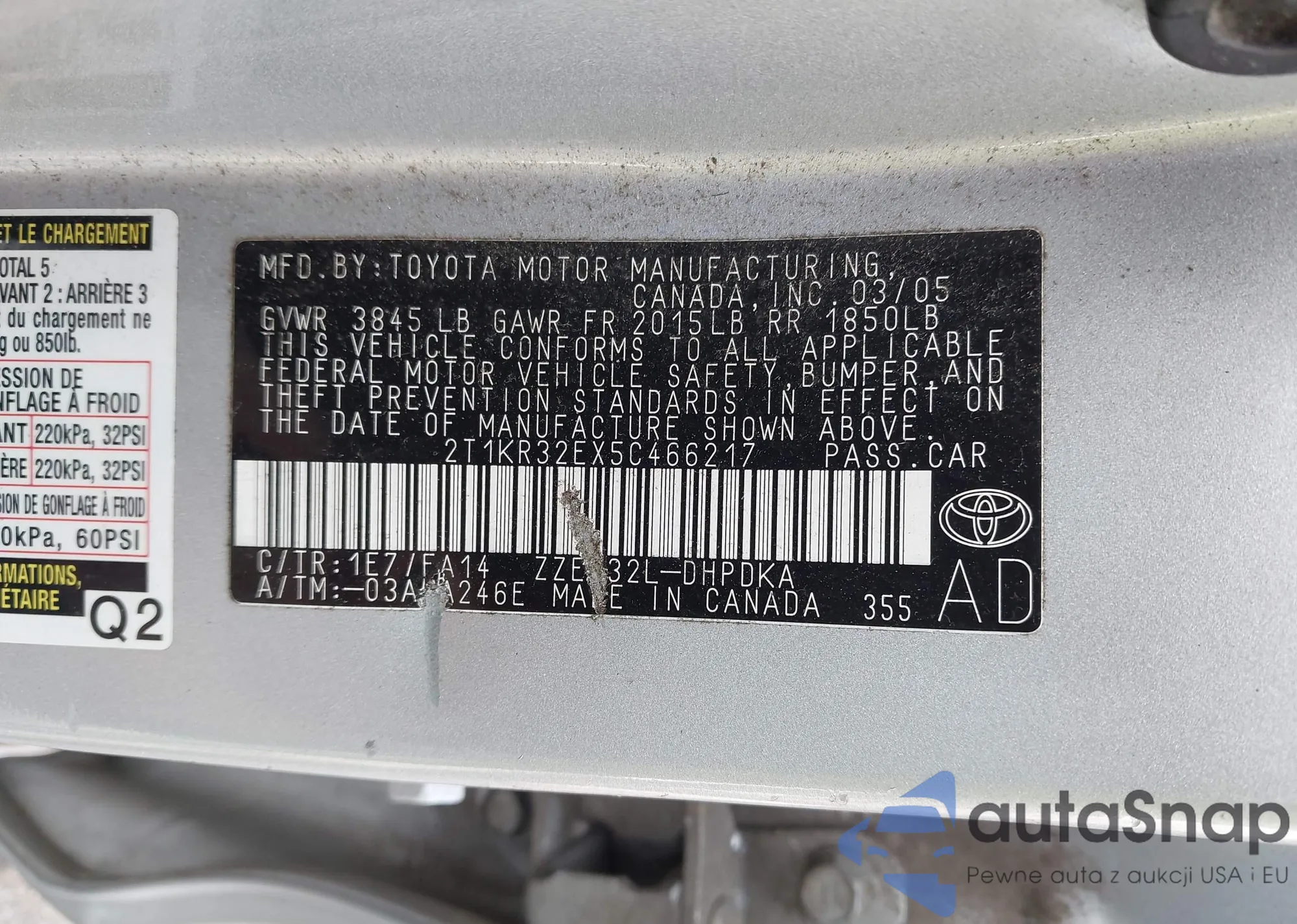 • VIN 2T1KR32EX5C466217