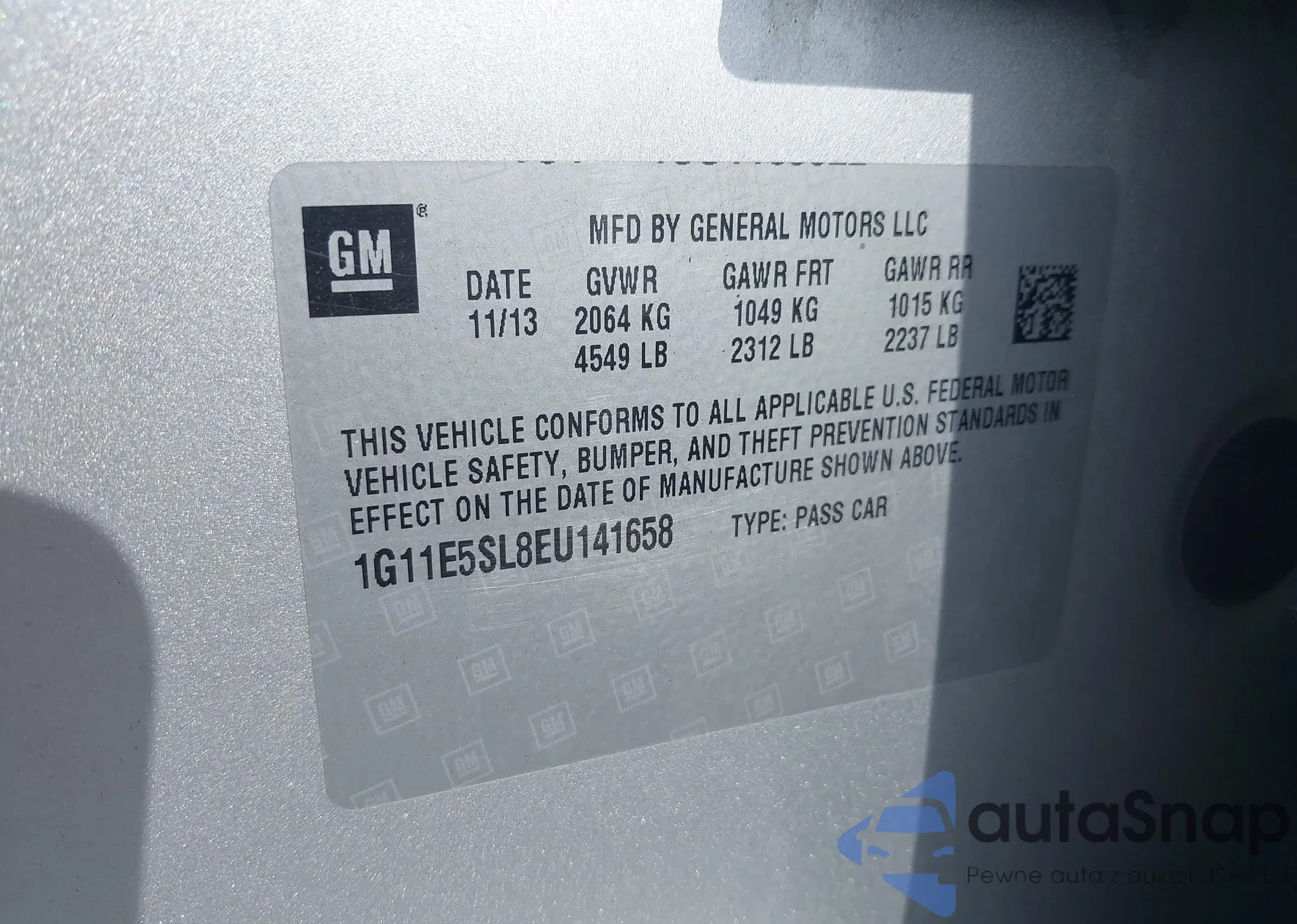 • VIN 1G6AA5RA4E0188929