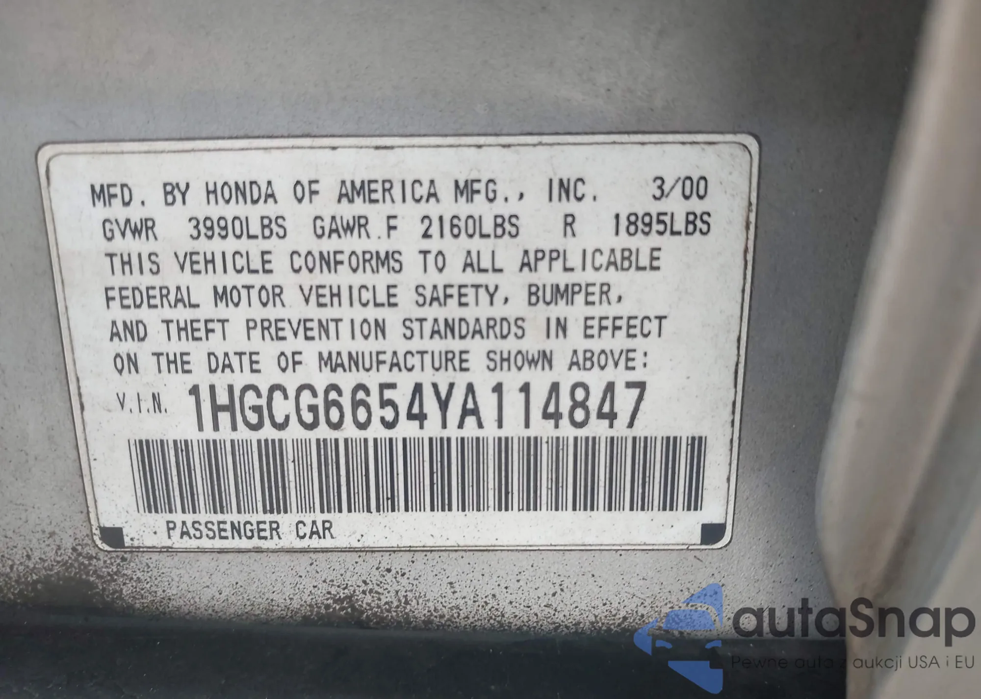 • VIN 1HGCG6654YA114847