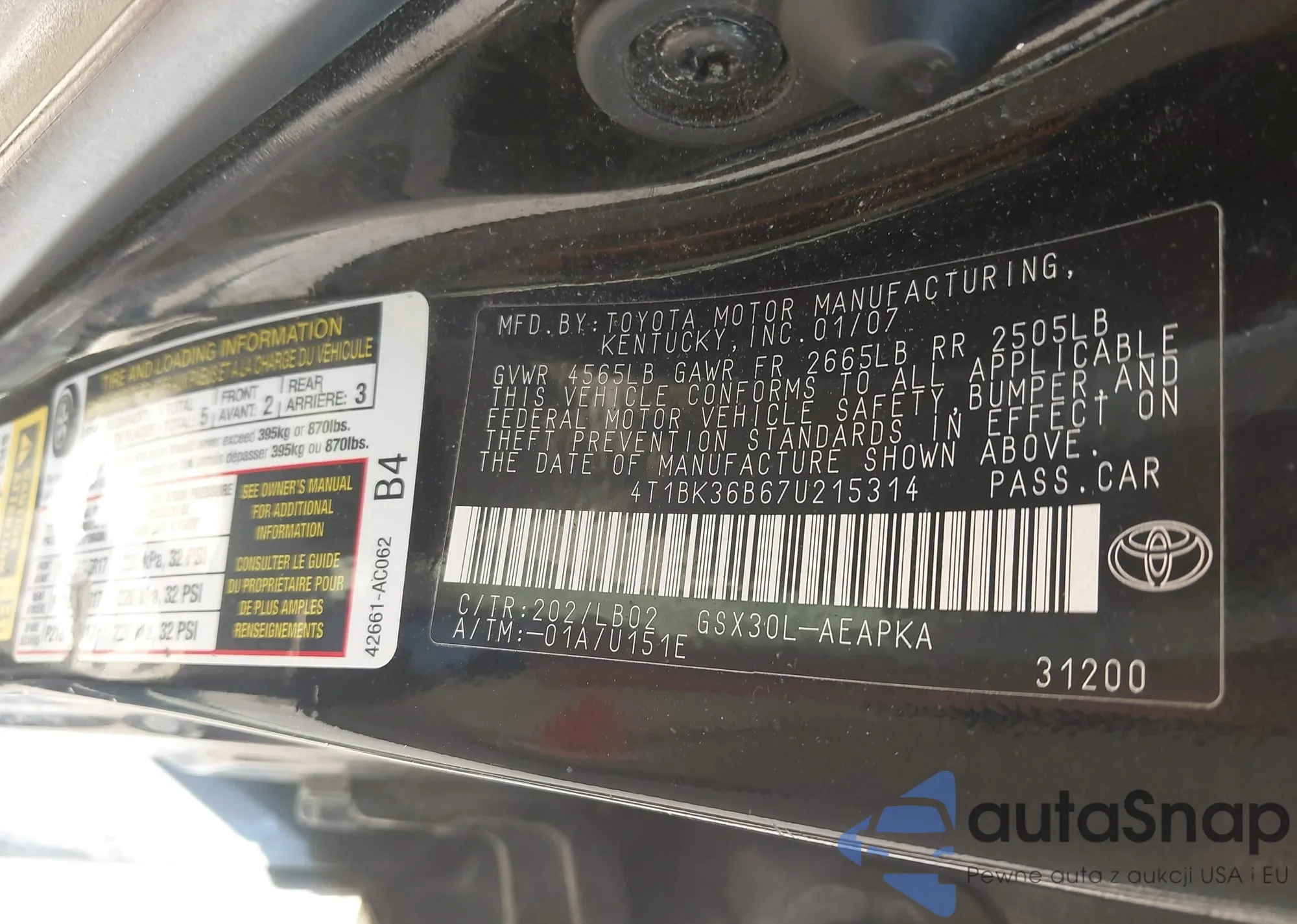 LOT: 43357915 VIN: 4T1BD1FK9DU083501