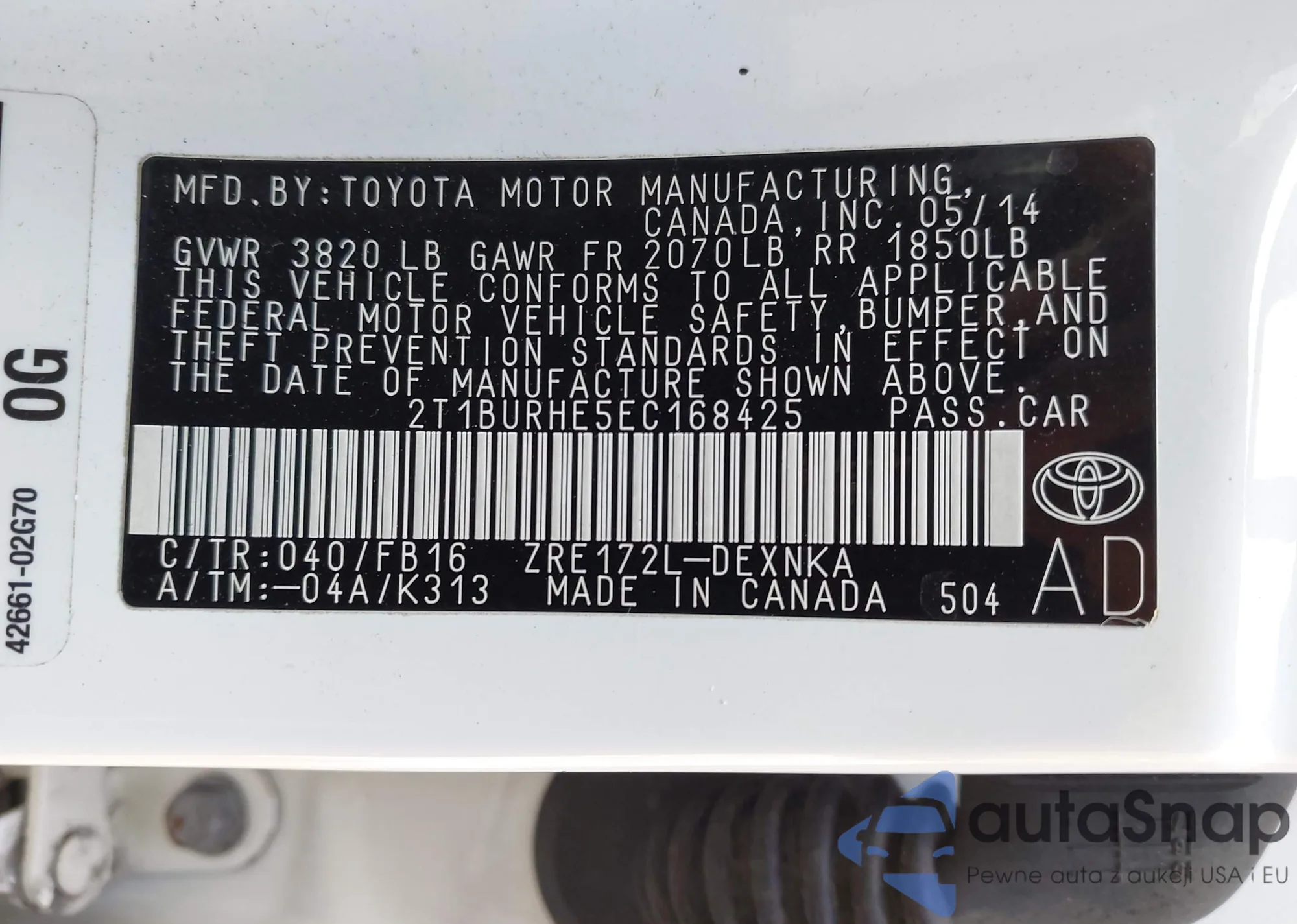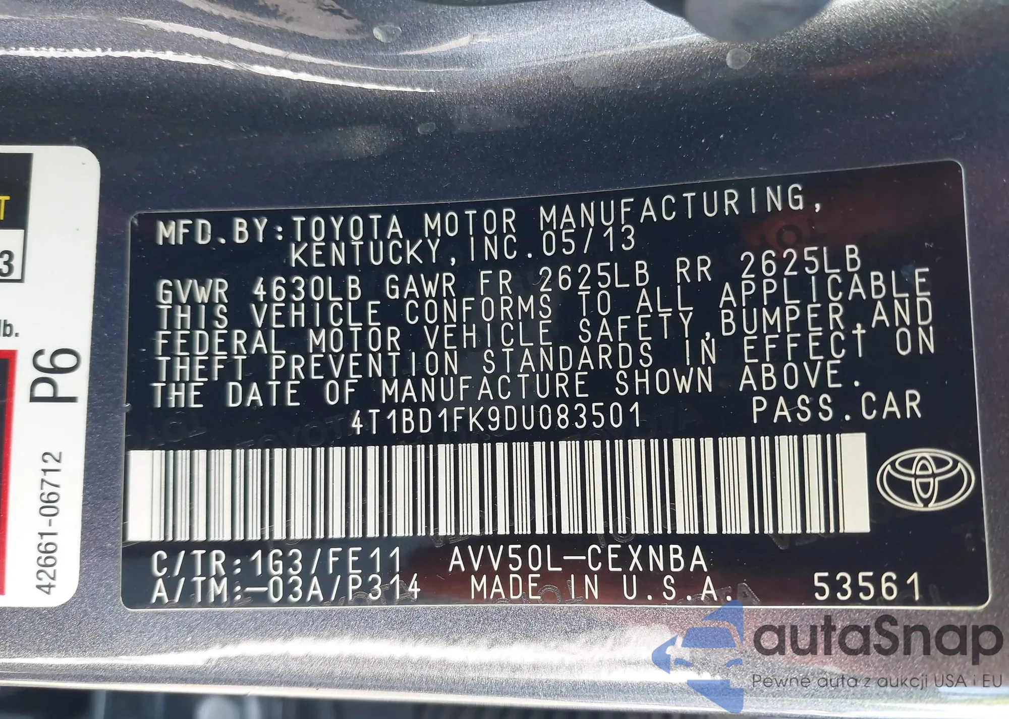 • VIN 4T1BD1FK9DU083501