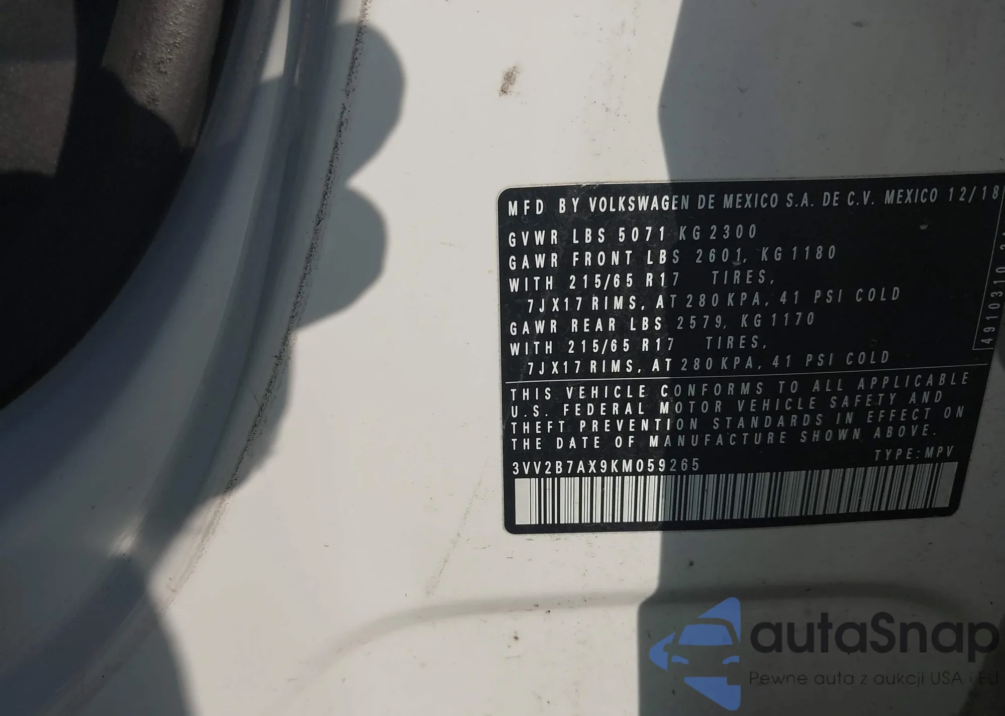 • VIN 3VWDZ7AJ6BM102908