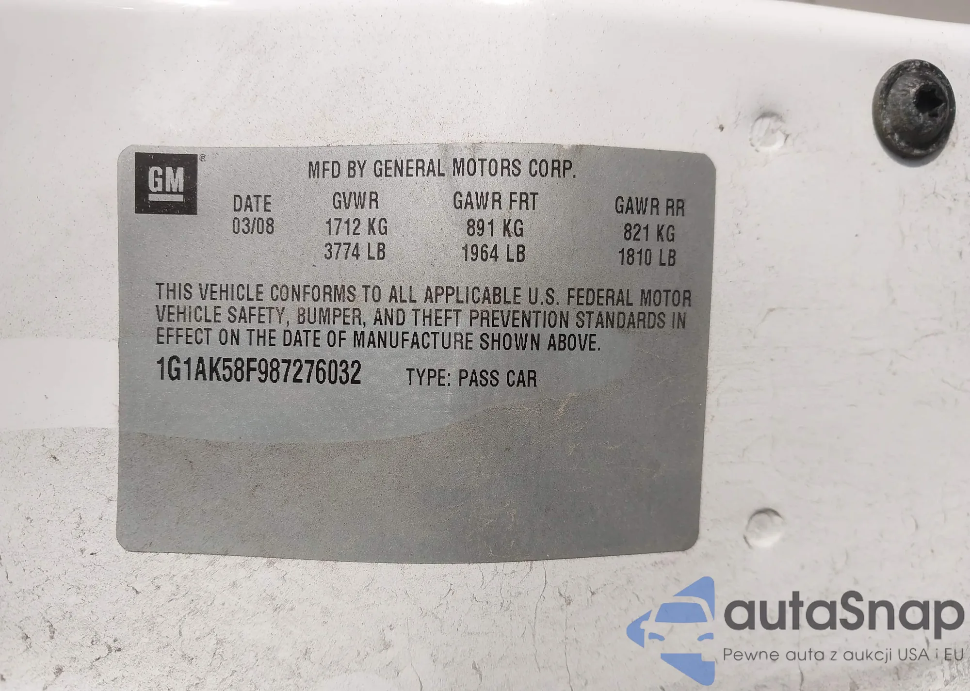 • VIN 1G1AK58F987276032