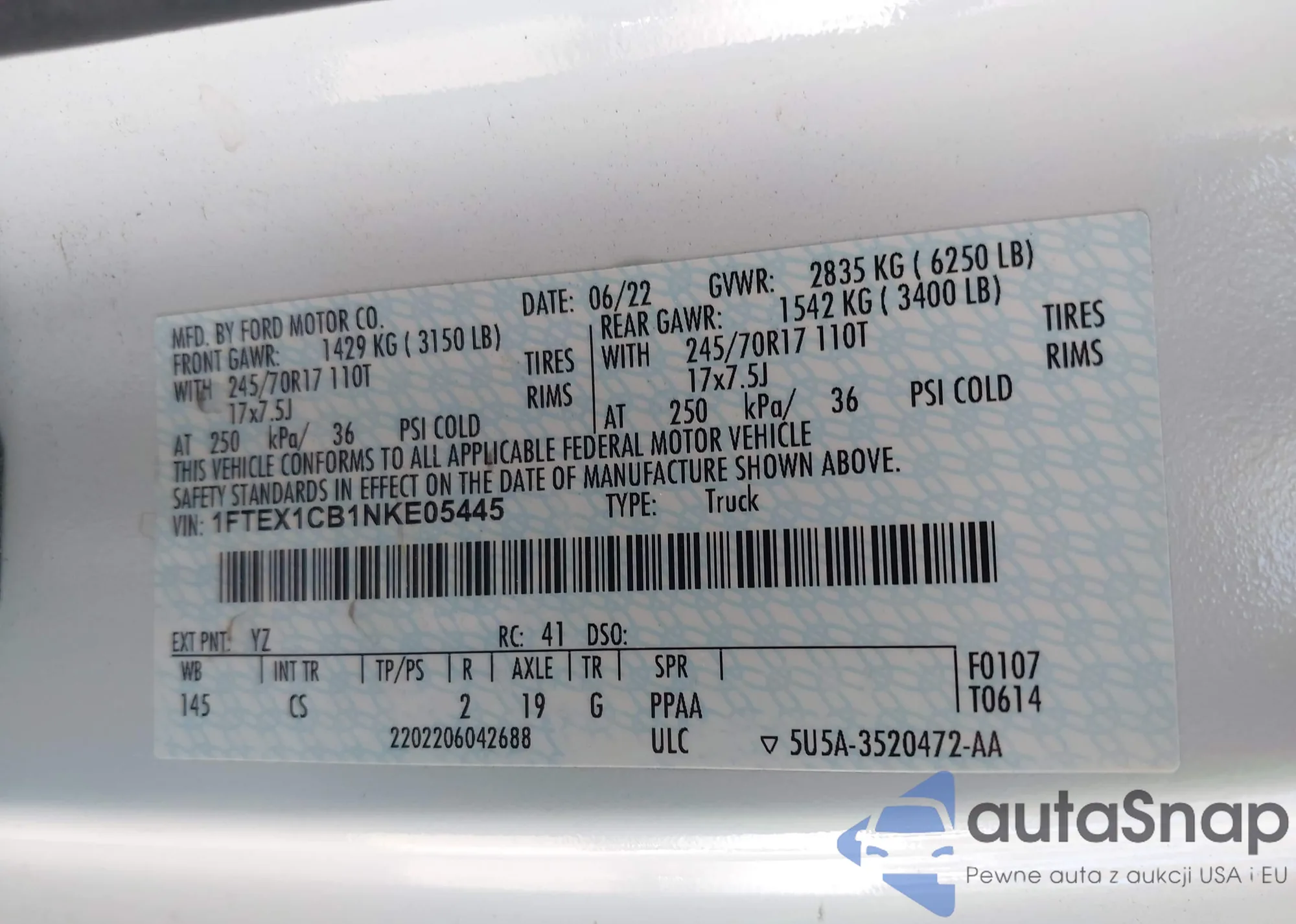 LOT: 43354370 VIN: 1FTEX1CB1NKE05445