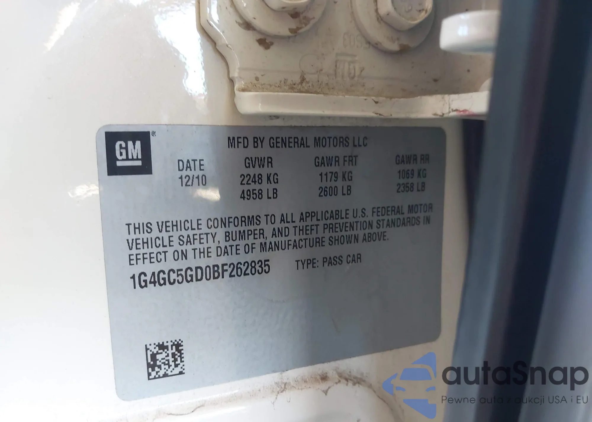 LOT: 43341632 VIN: 1G4GC5GD0BF262835