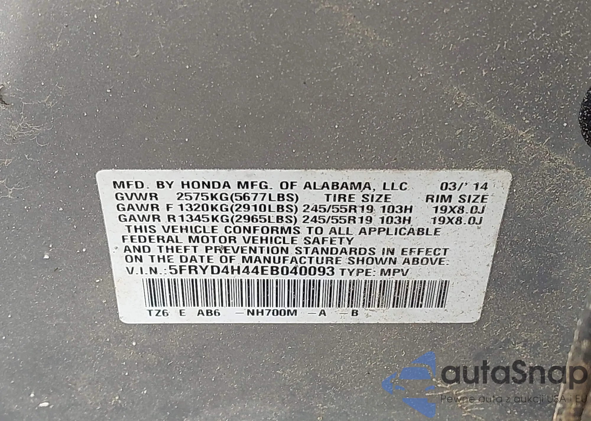 • VIN 5FRYD4H44EB040093