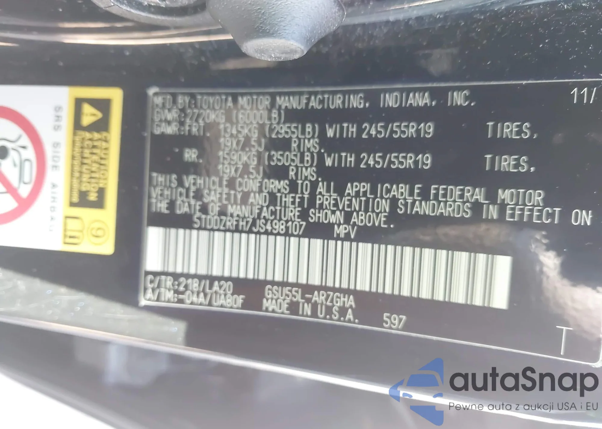 • VIN 5TDDZRFH7JS498107